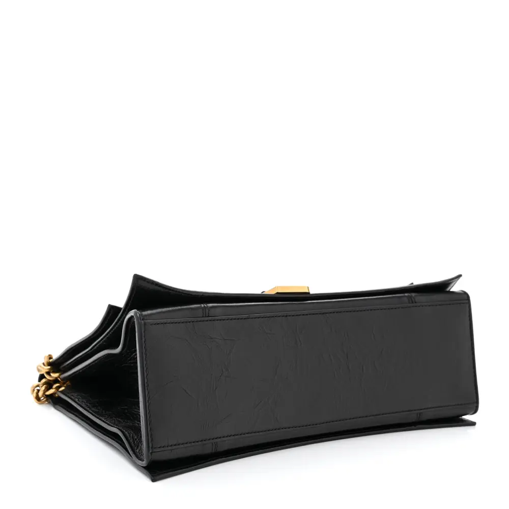 Balenciaga Medium Crush Chain Bag Black Crushed Calfskin Leather Gold Hardware