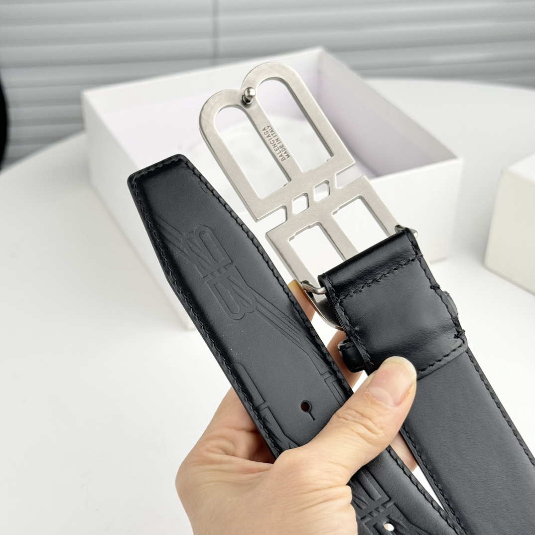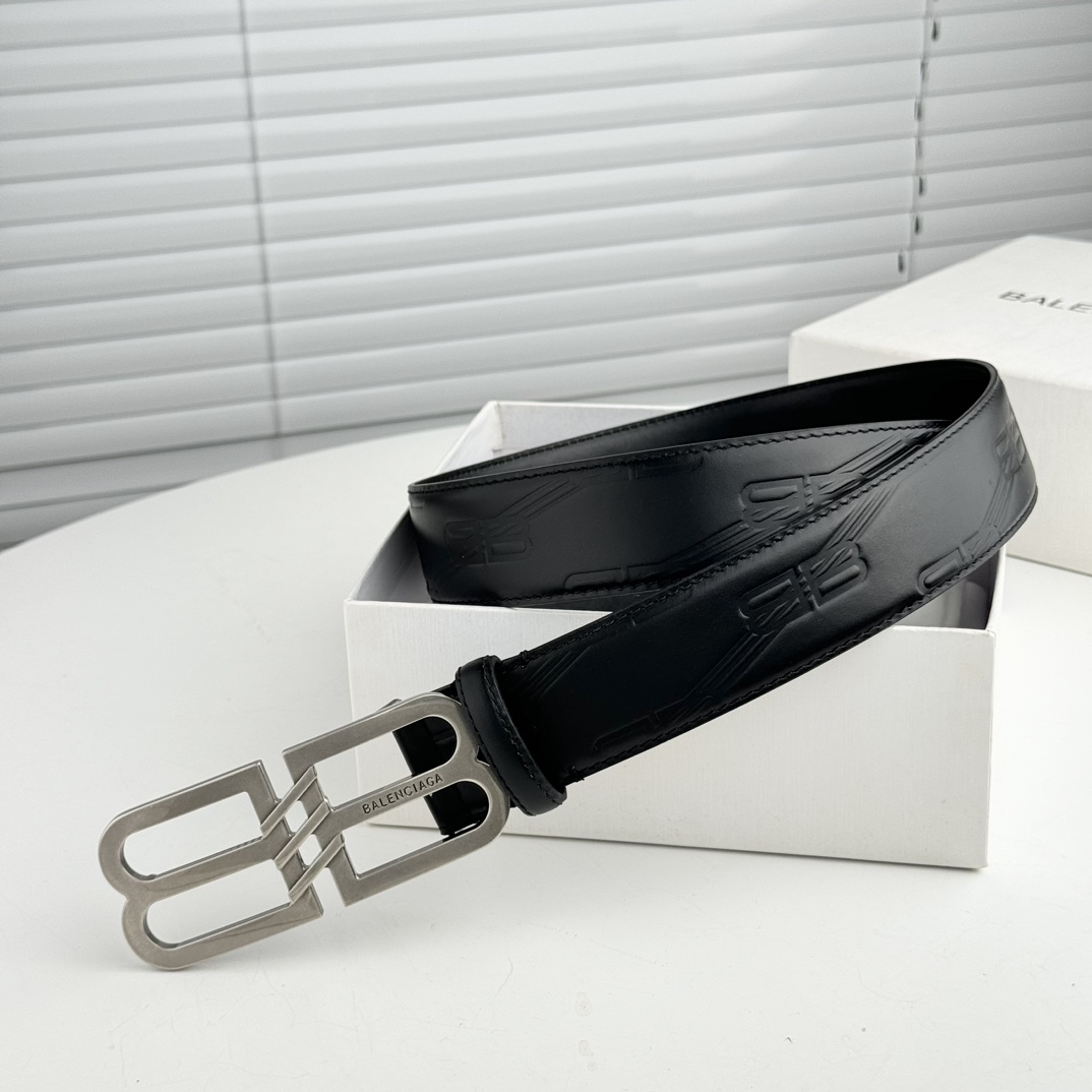 Balenciaga Men’s BB Signature Belt In Black BB Monogram Calfskin With Gold/Silver Hardware 40mm