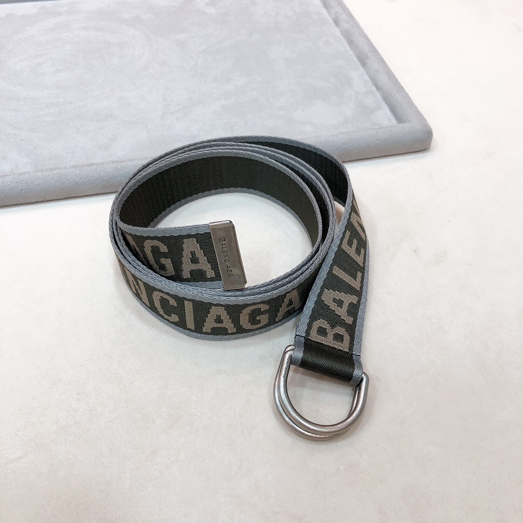 Balenciaga Men’s D Ring Belt In Balenciaga Grey/Green Webbing With Silver Hardware 40mm