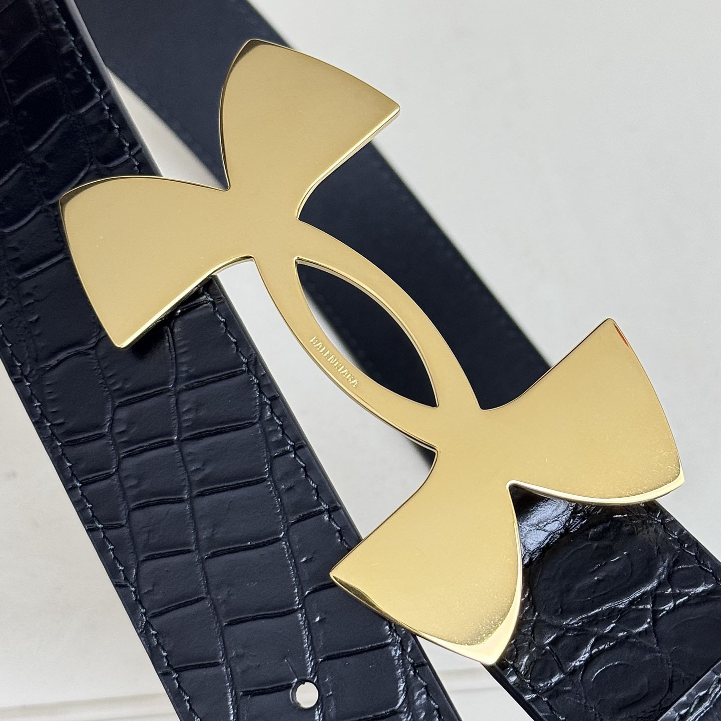 Balenciaga Men’s Under Armour Belt In Black Embossed Crocodile Calfskin With Gold/Silver Hardware 35mm