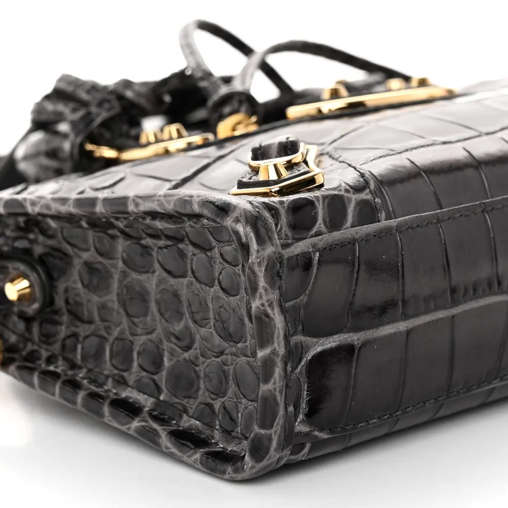 Balenciaga Nano City Bag Dark Grey Crocodile Embossed Calfskin Leather Gold Hardware