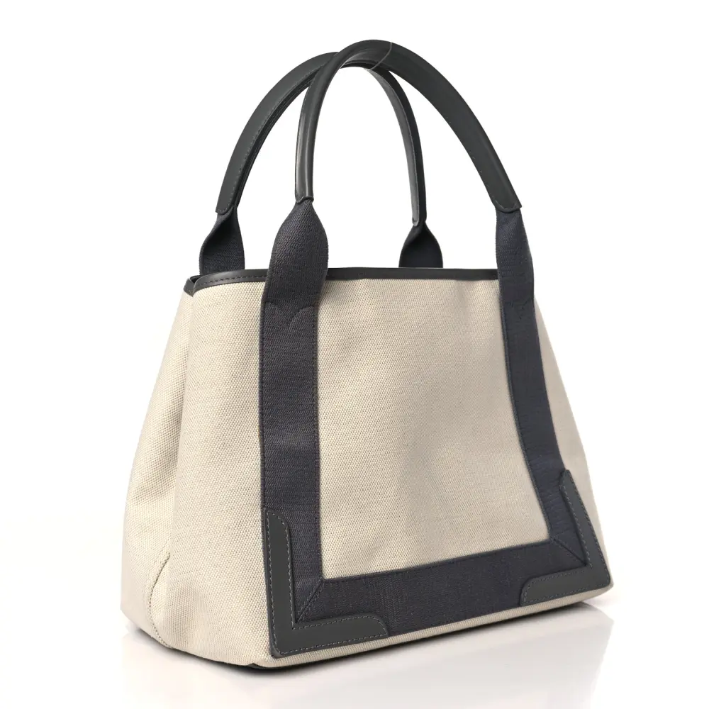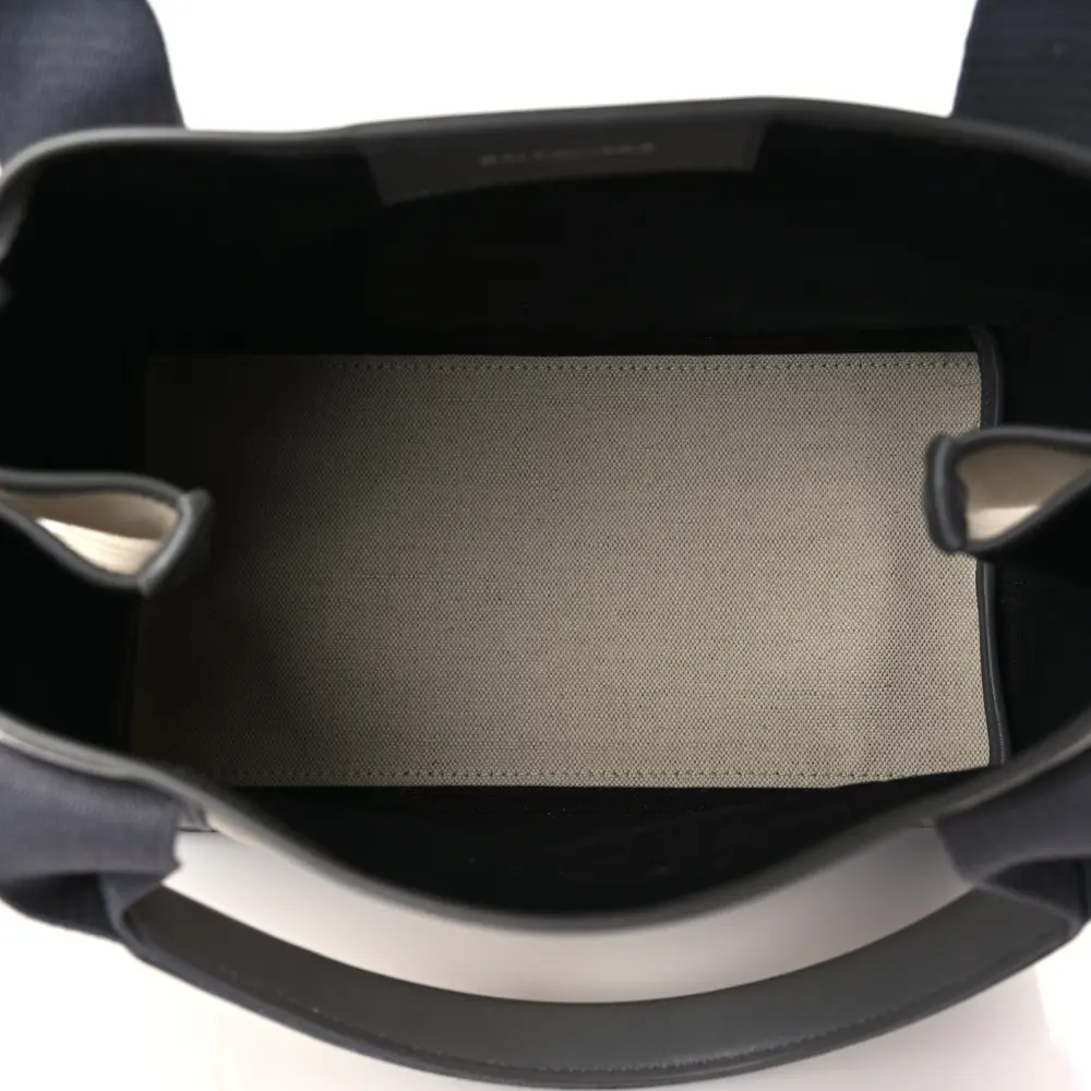 Balenciaga S Navy Cabas Naturel Gris Acier Cotton Canvas & Calfskin Leather