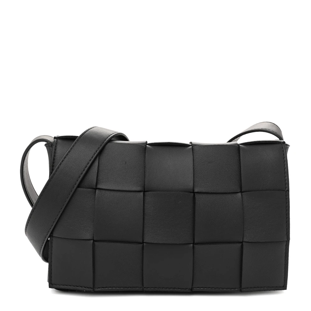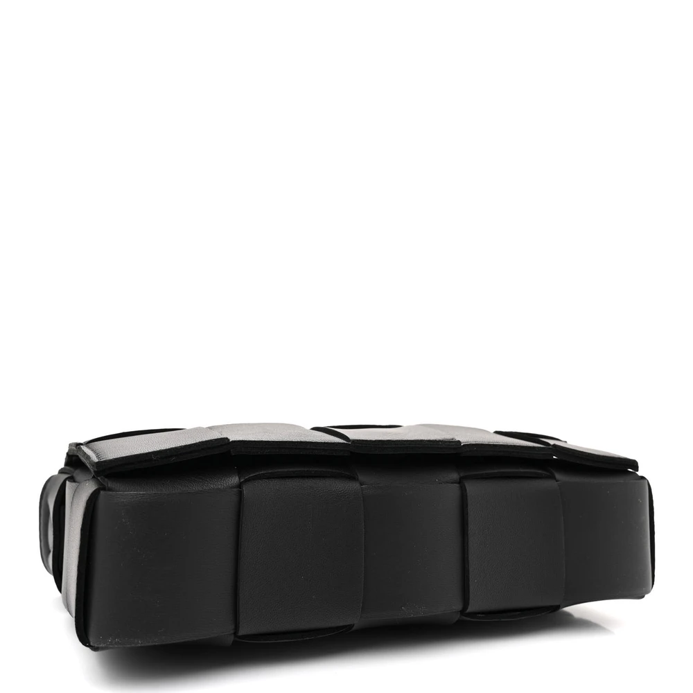 Bottega Veneta Maxi Intrecciato Cassette Crossbody Bag Black Lambskin Leather