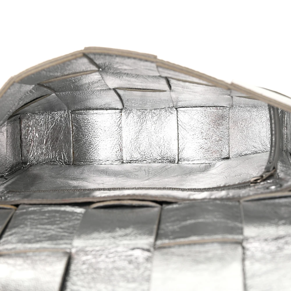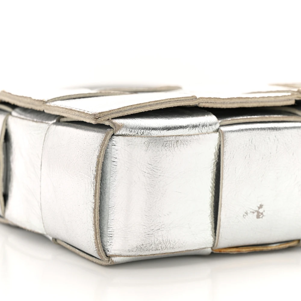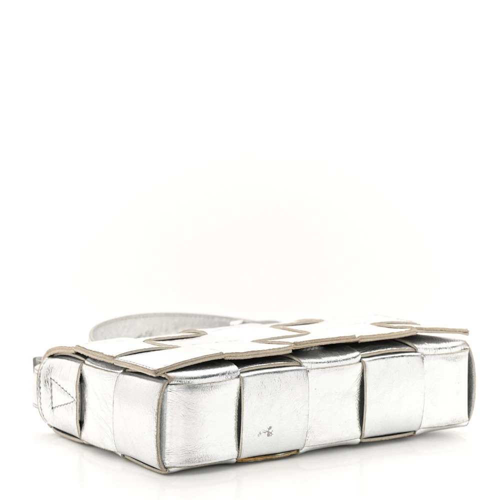 Bottega Veneta Maxi Intrecciato Cassette Crossbody Bag Metallic Silver Lambskin Leather