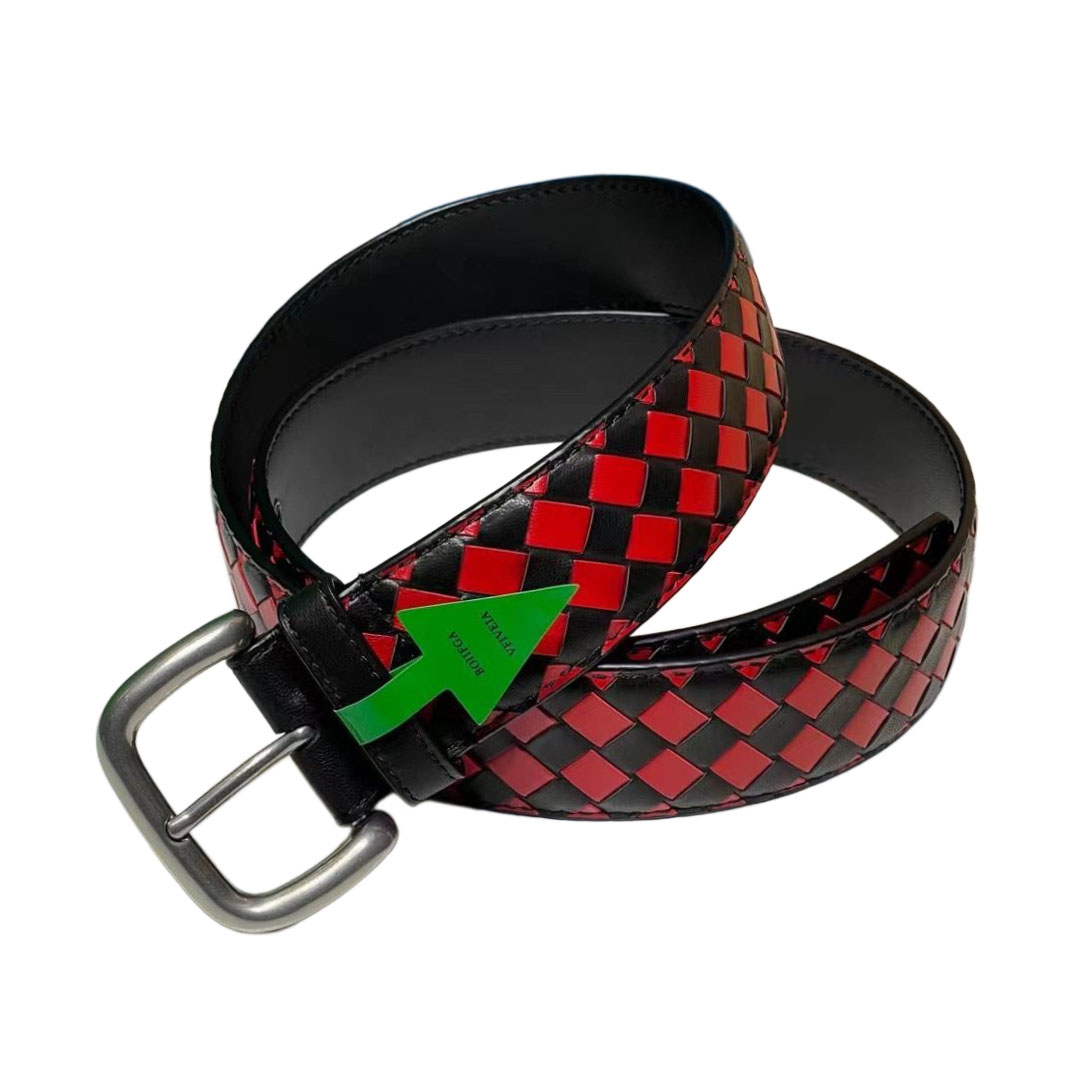 Bottega Veneta Men’s Square Buckle Intrecciato Belt In Multicolor Calfskin With Silver/Matte Gun Black Hardware 35mm