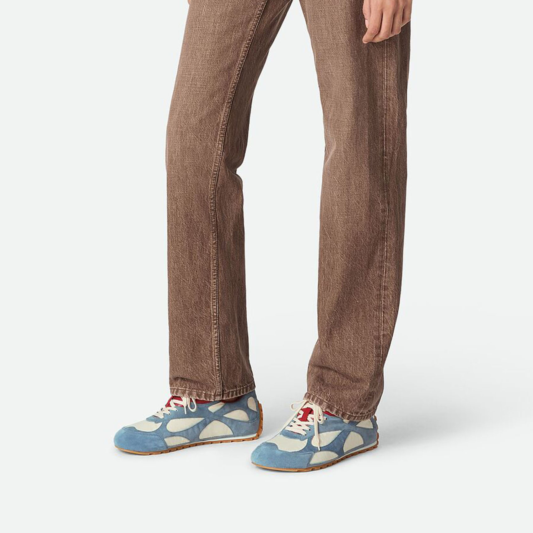 Bottega Veneta Orbit Flash Sneakers In Ice/Sea Salt Suede And Nylon Lace-Up Sneaker With Leather Trims