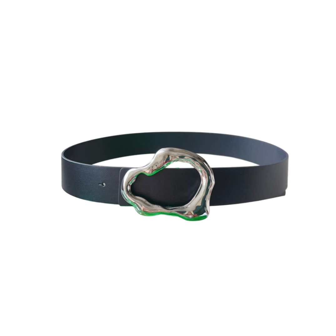 Bottega Veneta Women’s Irregular Buckle Adjustable Belt In Coffee/Black/Brown Calfskin With Silver Hardware 40mm
