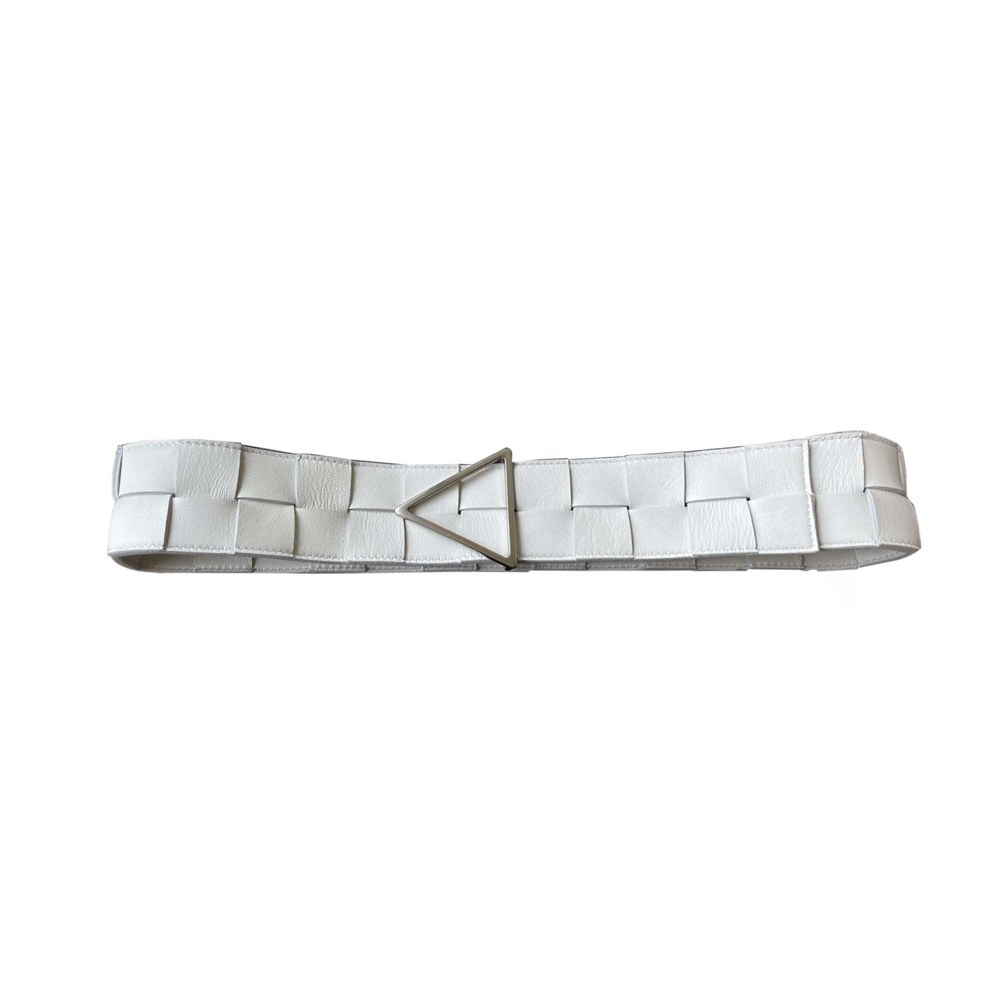 Bottega Veneta Women’s Triangle Buckle Maxi Intrecciato Belt In Black/Coffee/Blue/White Calfskin With Gold/Silver Hardware 60mm