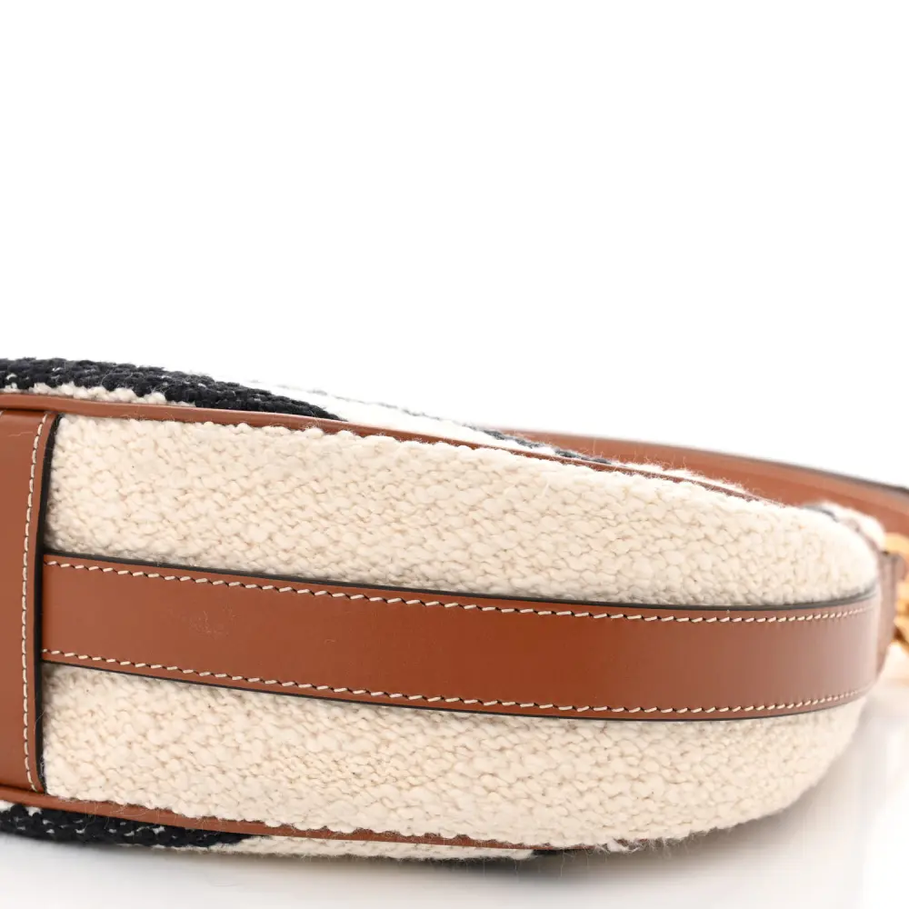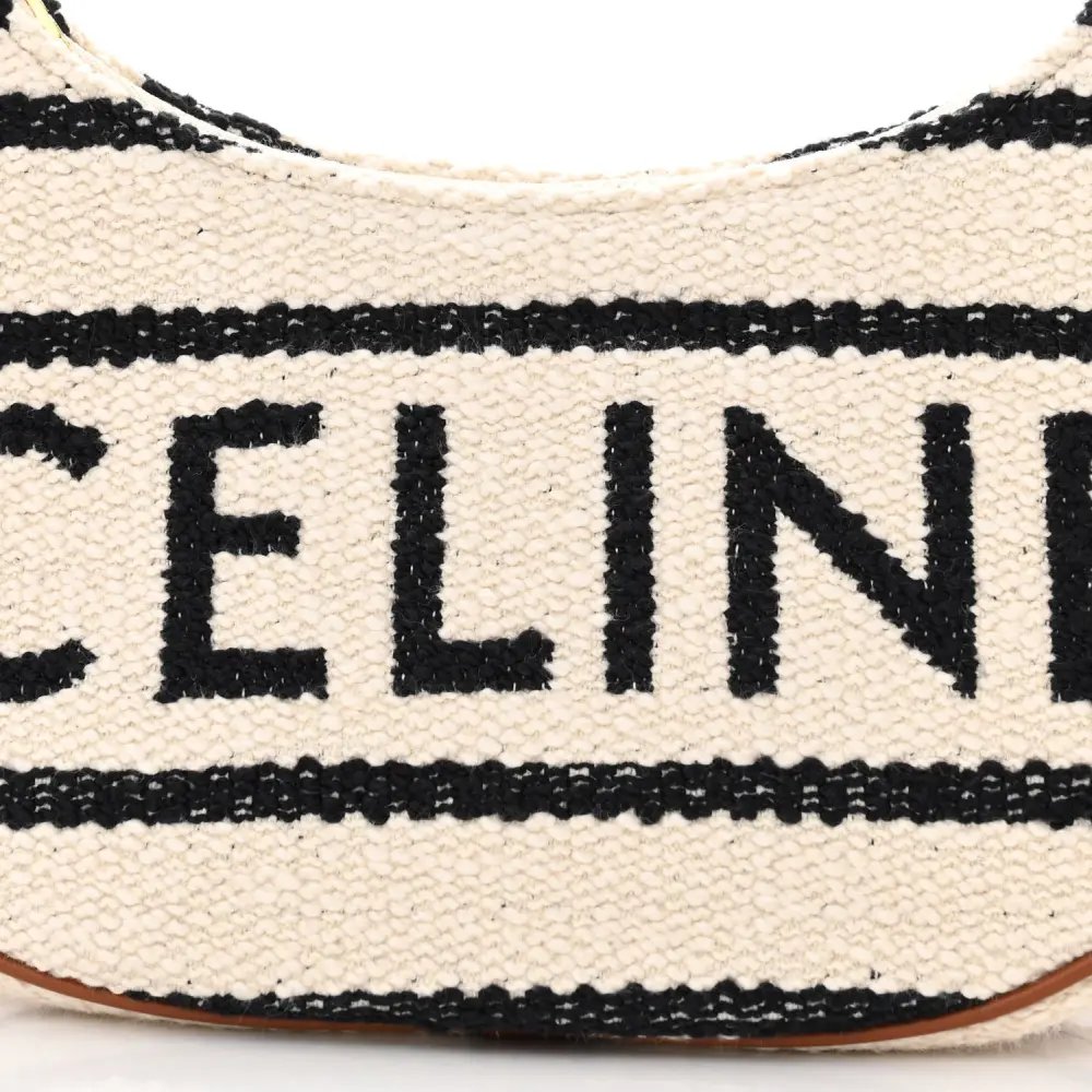 This Celine Medium Ava Shoulder Bag in White/Black is crafted from textile with gold hardware. Its sleek and compact design is perfect for daily use. The adjustable strap offers versatile styling options. A sophisticated choice for modern accessorizing.
