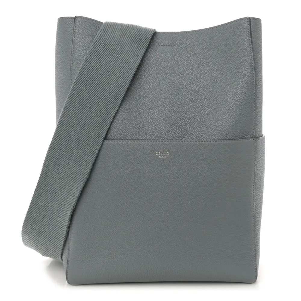 Celine Medium Sangle Bucket Bag Storm Soft Grained Calfskin Leather Gold Hardware