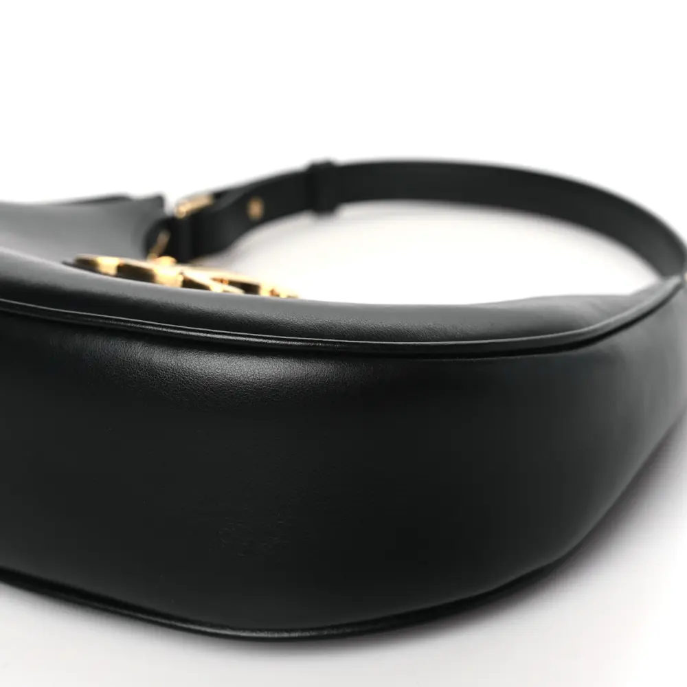 Celine Medium Strap Ava Triomphe Shoulder Bag Black Smooth Calfskin Leather Gold Hardware