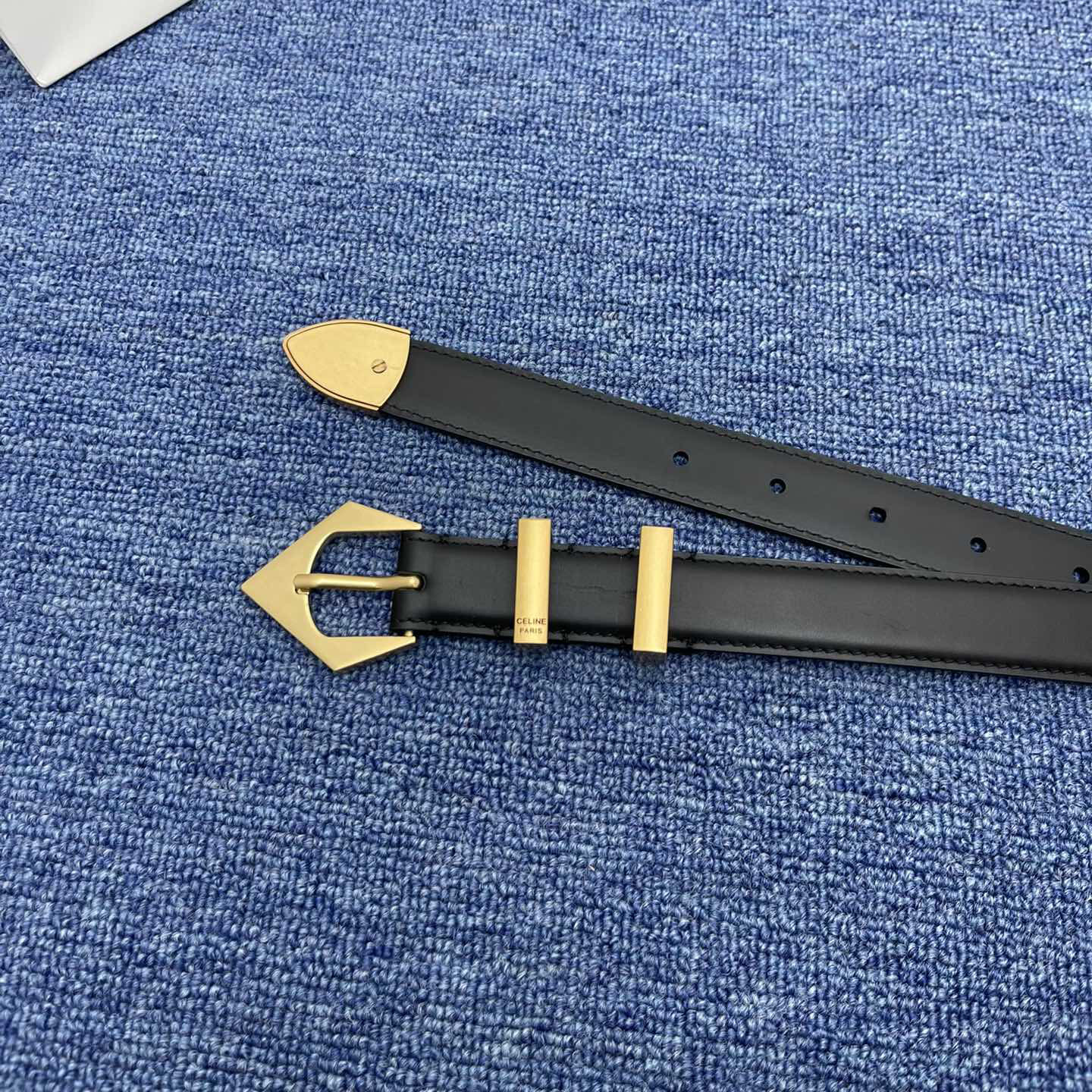 Celine Triangled Buckle Reversible Belt In Brown/Black/Red Calfskin With Gold Hardware 25mm