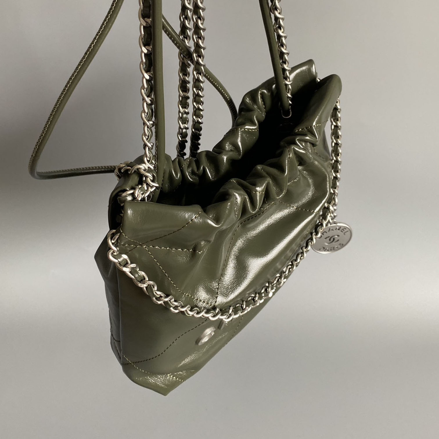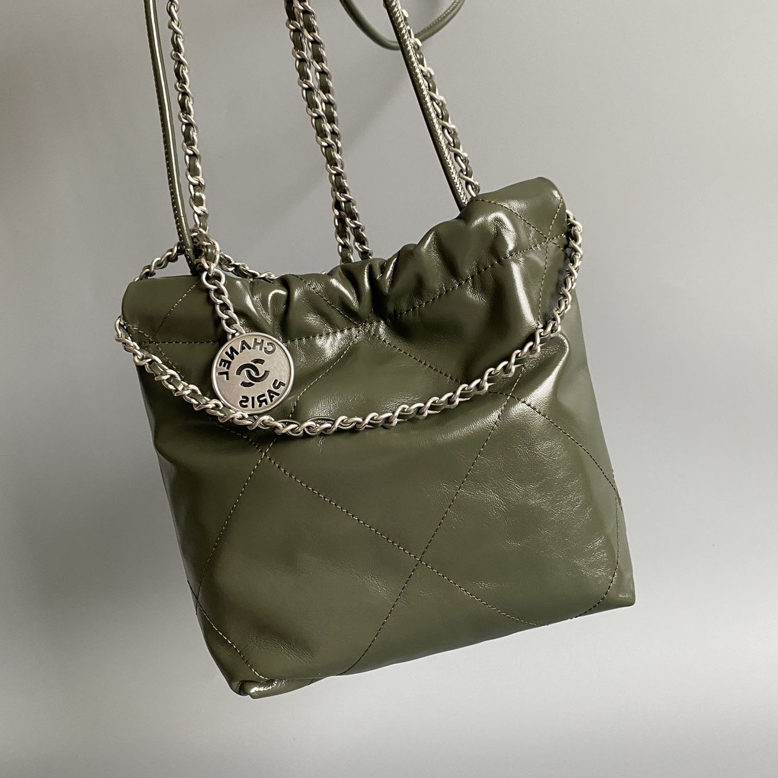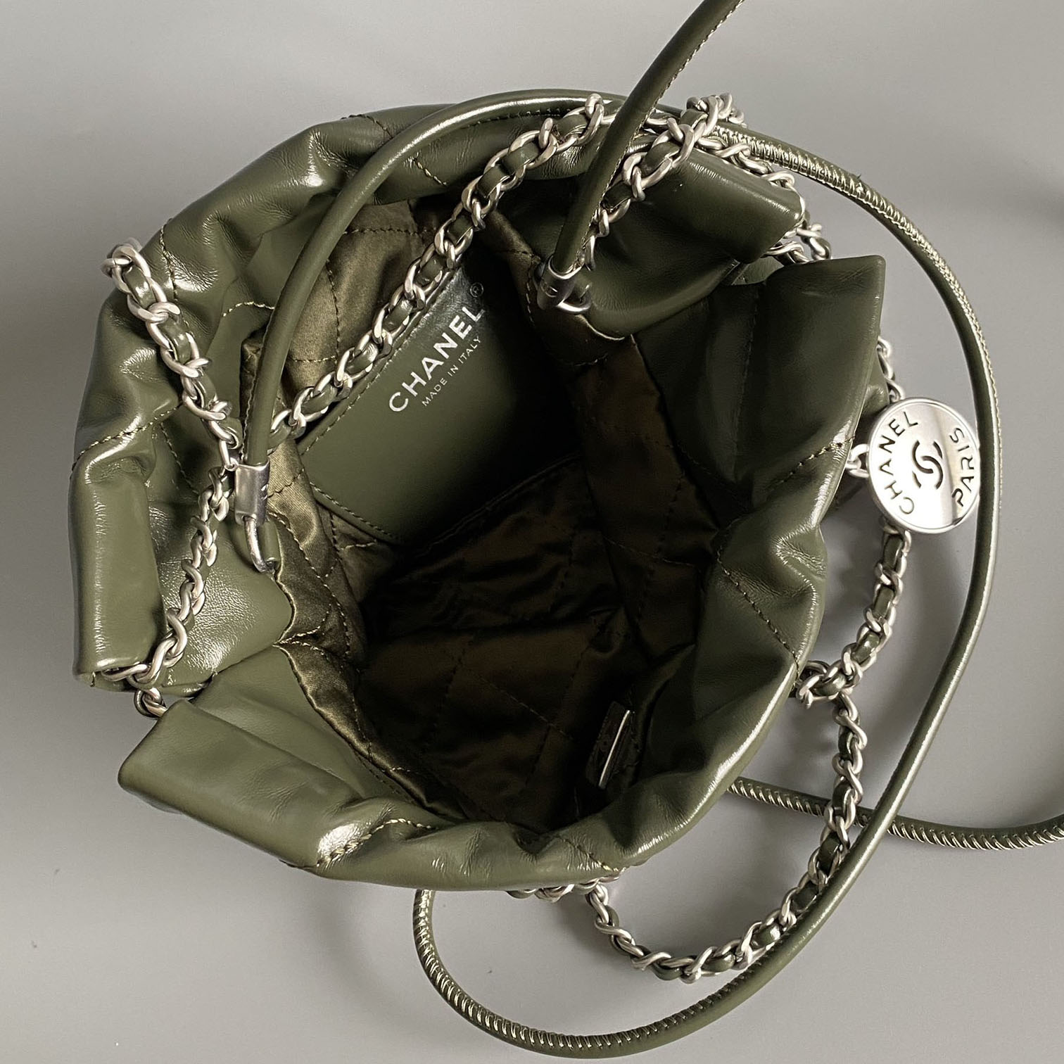 | Material | Quilted Shiny Calfskin Leather |