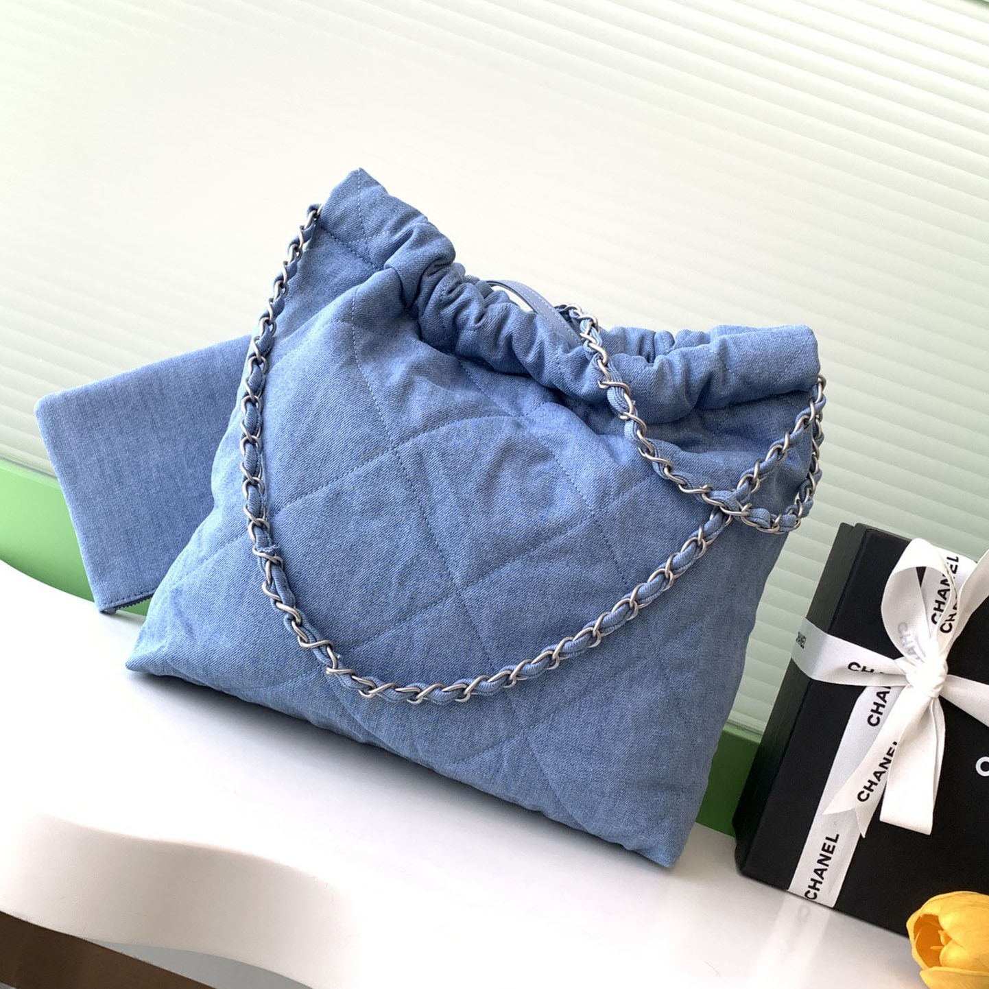 | Material | Denim / Quilted Shiny Calfskin Leather |