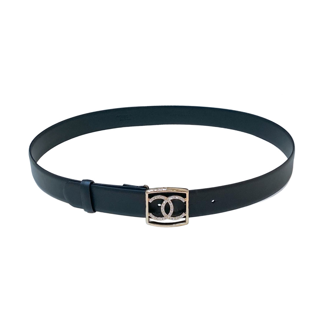 Chanel 24S Women’s CC Crystal Square Buckle Belt In Brown/Arrowroot/Black/Blue Calfskin With Gold Hardware 30mm