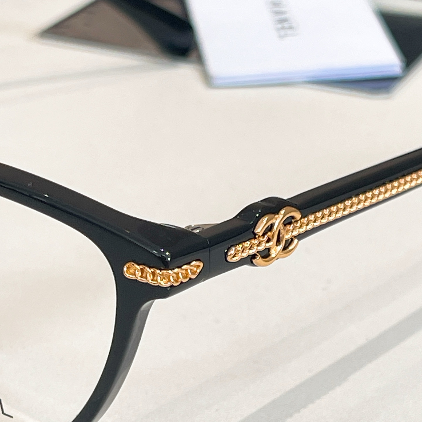 CHANEL Blcak gold glasses size 54口-17-140
