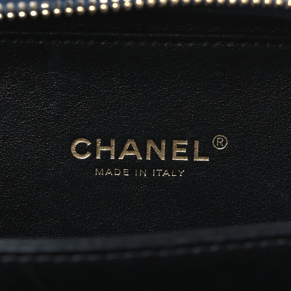 Chanel CC Filigree Vanity Case Small Navy/Black Quilted Caviar Leather Gold Hardware