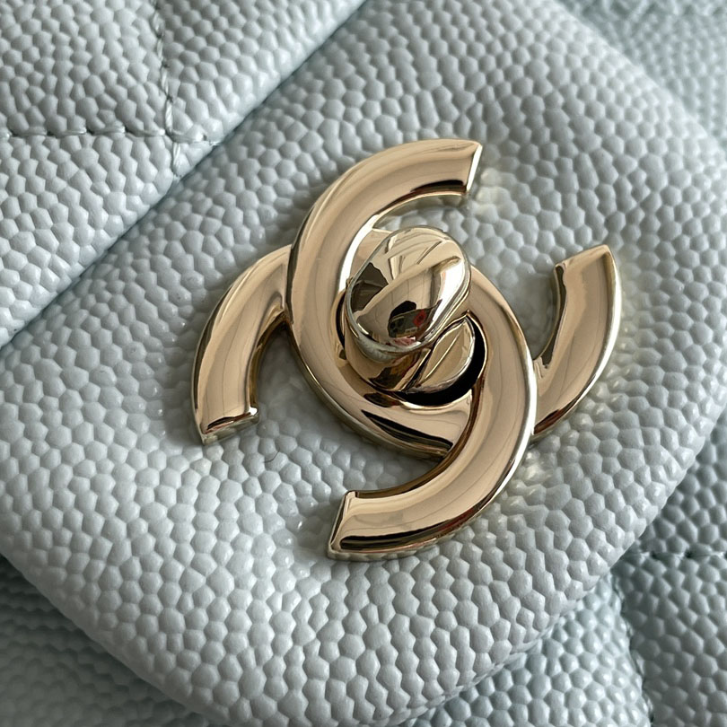 Chanel CF Litchi grain Tiffany blue silver buckle gold buckle 25cm Crossbody Bags