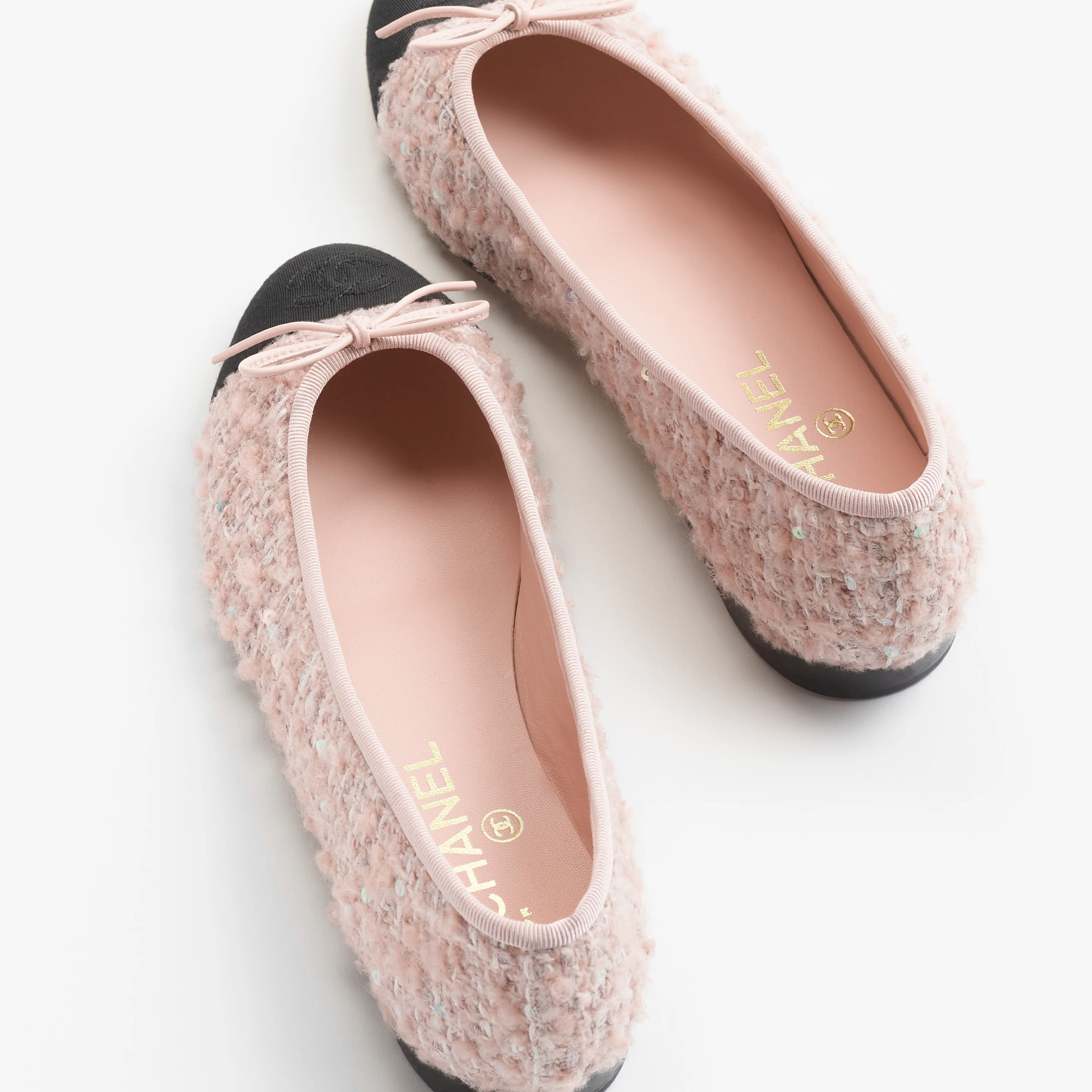 Chanel Flat shoes with twill soft wool and satin, light pink, beige, milky white and black Ballet Shoes
