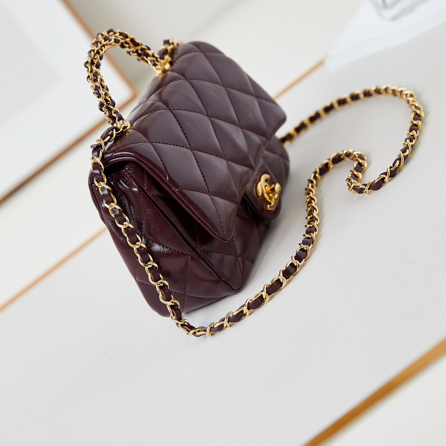Chanel Gold handle handbag wine red/black/White/milk tea color/avocado green crossbody bag