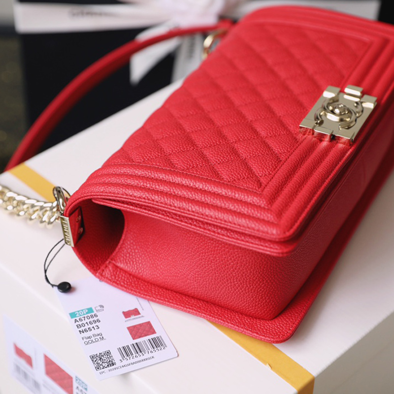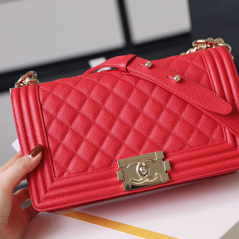 Chanel Lleboy Red Quilted Caviar Leather Shoulder Bags Crossbody Bags