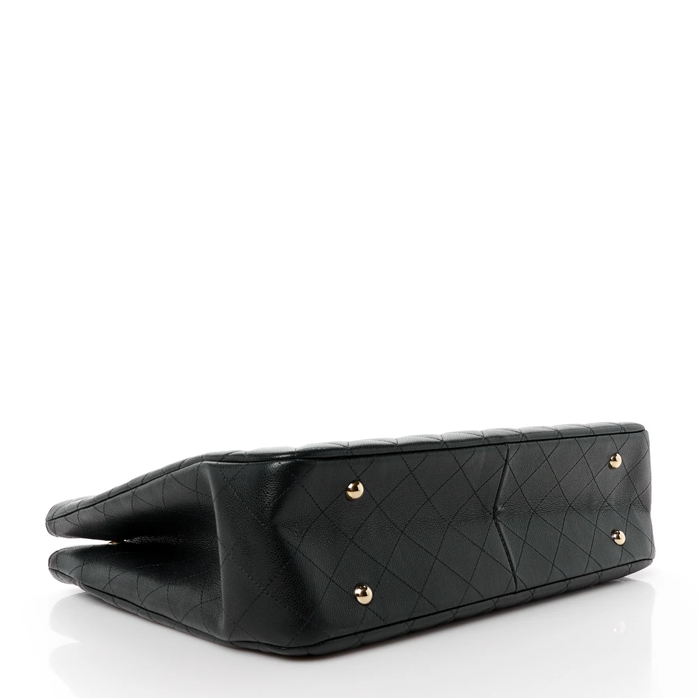 Chanel Shopping Tote Large Black Quilted Caviar Leather Light Gold Hardware