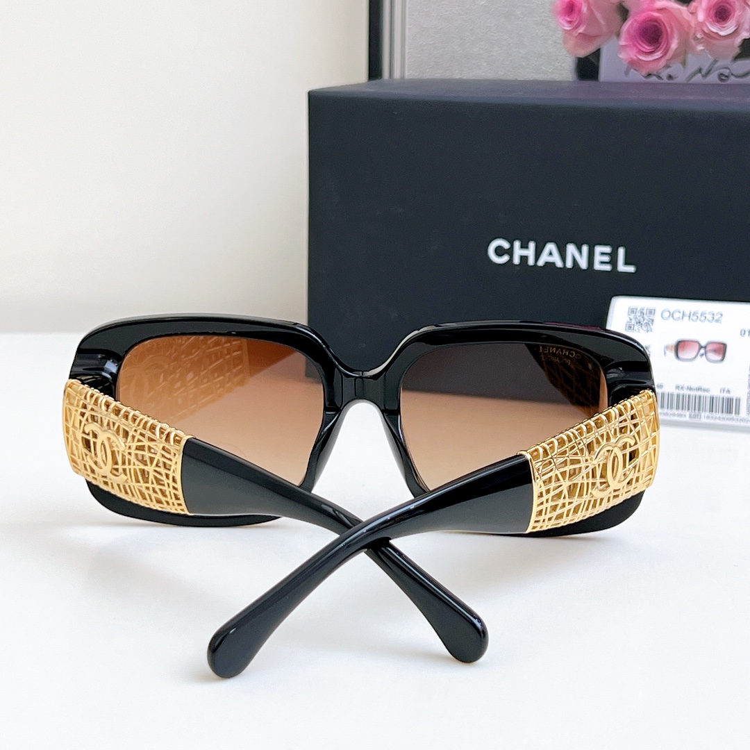 CHANEL square frame glasses black gold color size 54-20-140
