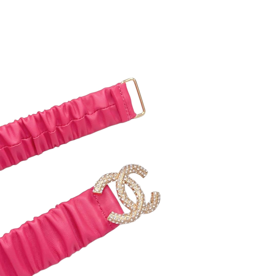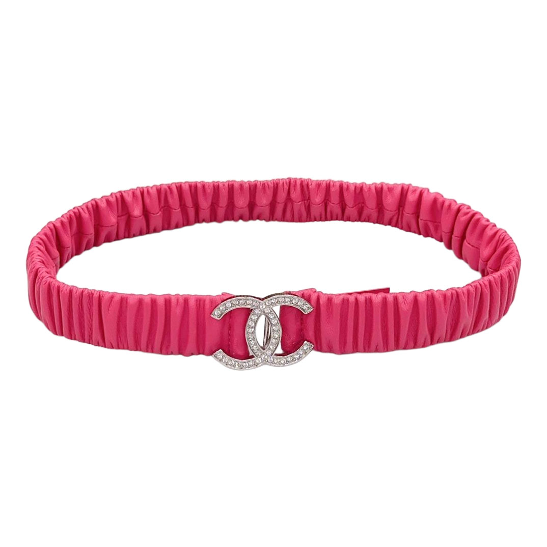 Chanel Women’s CC Various Buckles Belt In Pink Lambskin With Gold/Silver Hardware 30mm
