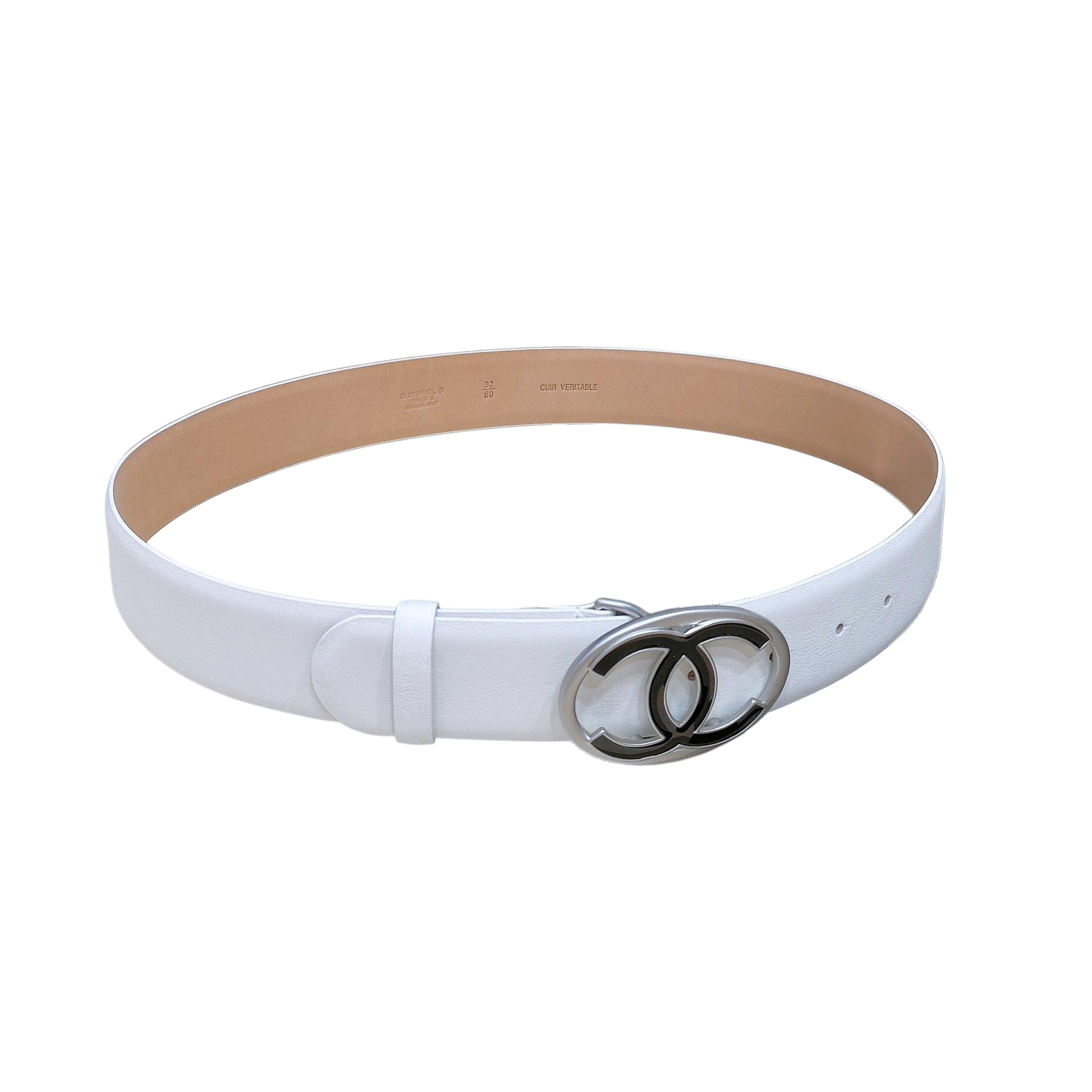 Chanel Women’s Oval CC Buckle Belt In Black/Brown/White Calfskin With Gold/Silver Hardware 40mm