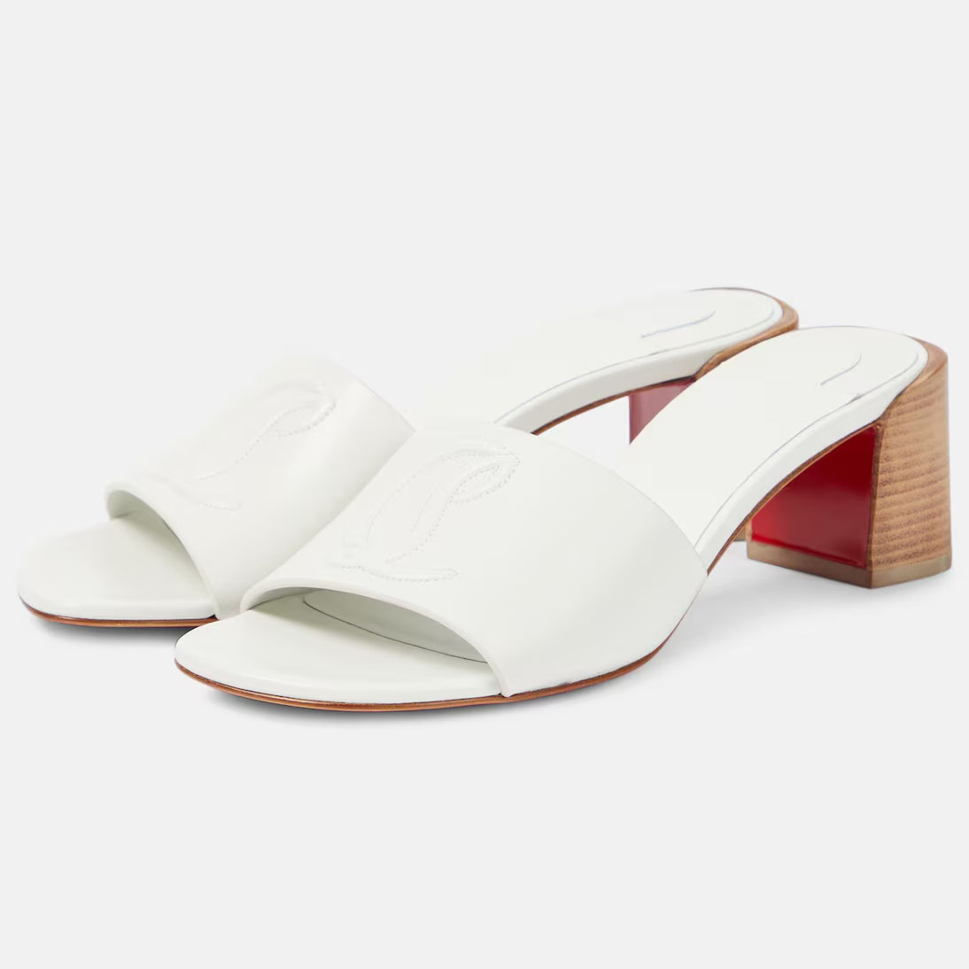 Christian Louboutin White leather square heels with thick heels
