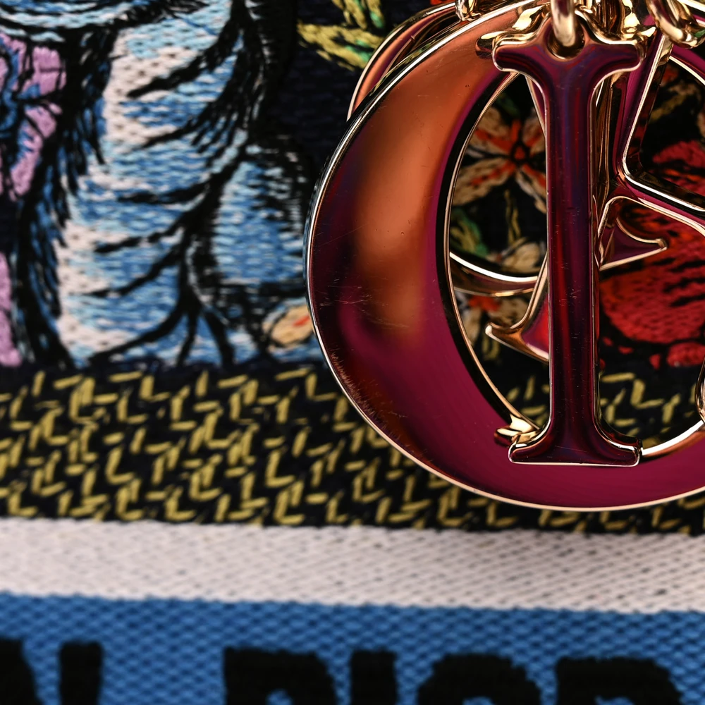 Dior Medium D-Constellation Lady D-Lite Blue Multicolor Embroidered Canvas Gold Hardware