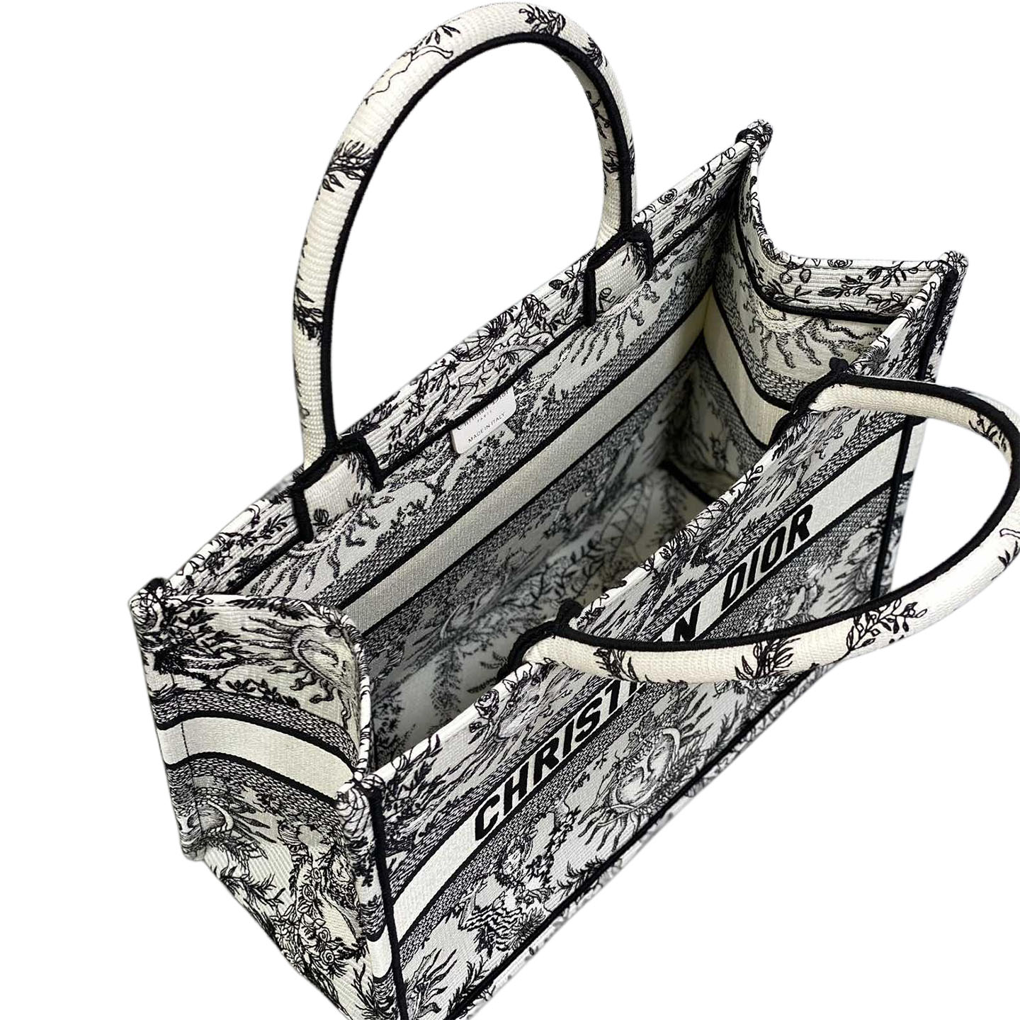 This Dior Medium Book Tote in White Black Soleil Embroidered Canvas is an artistic and luxurious statement. Spacious and lightweight, it’s perfect for travel or daily use. The intricate embroidery showcases Dior’s exceptional craftsmanship. A bold addition for those seeking unique accessories.