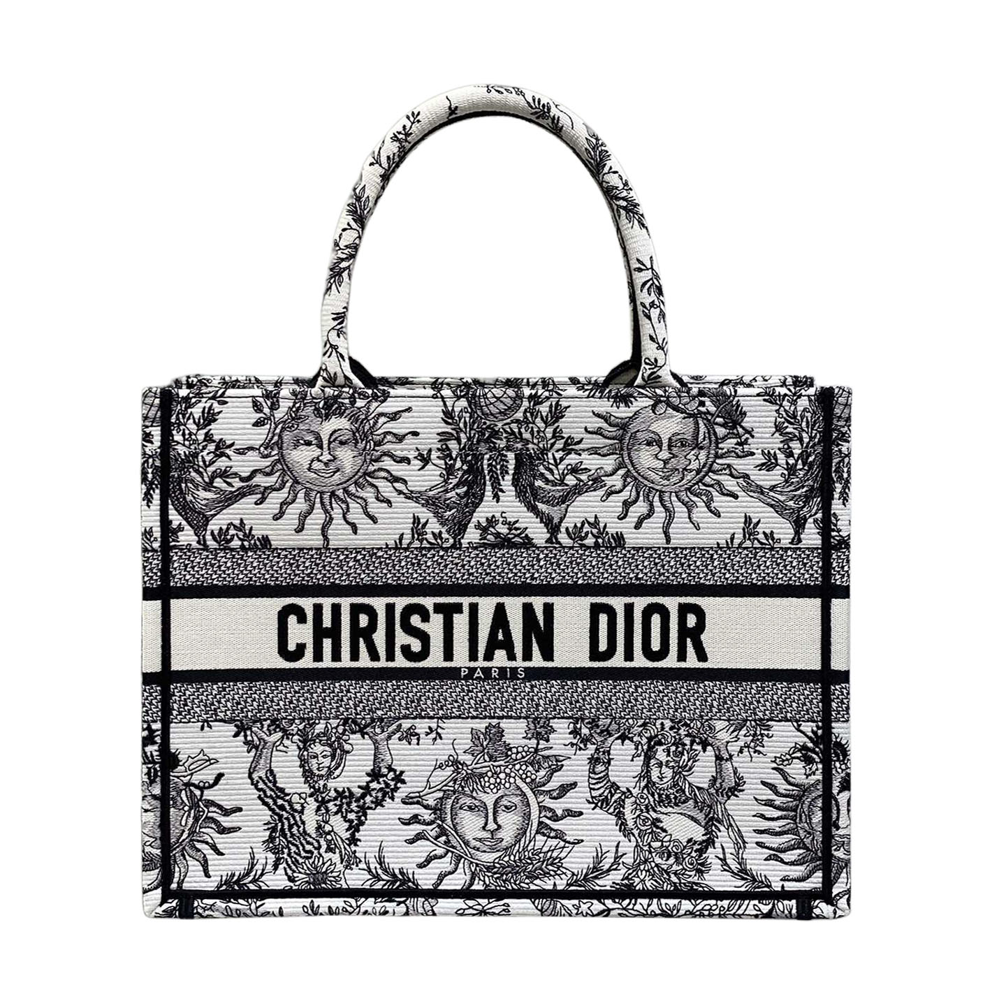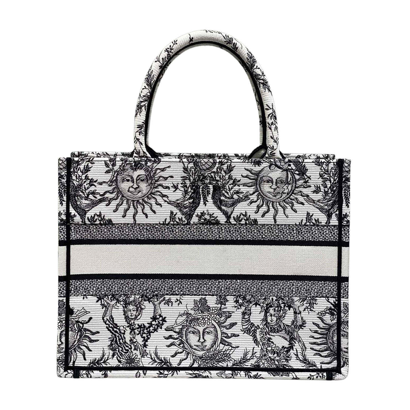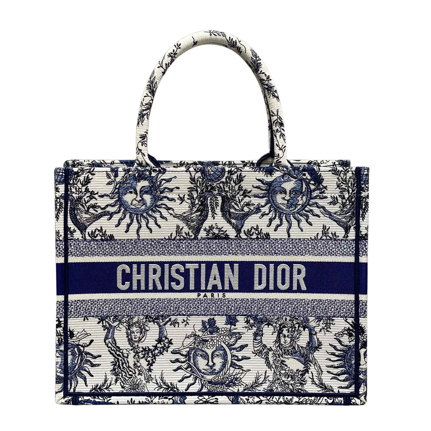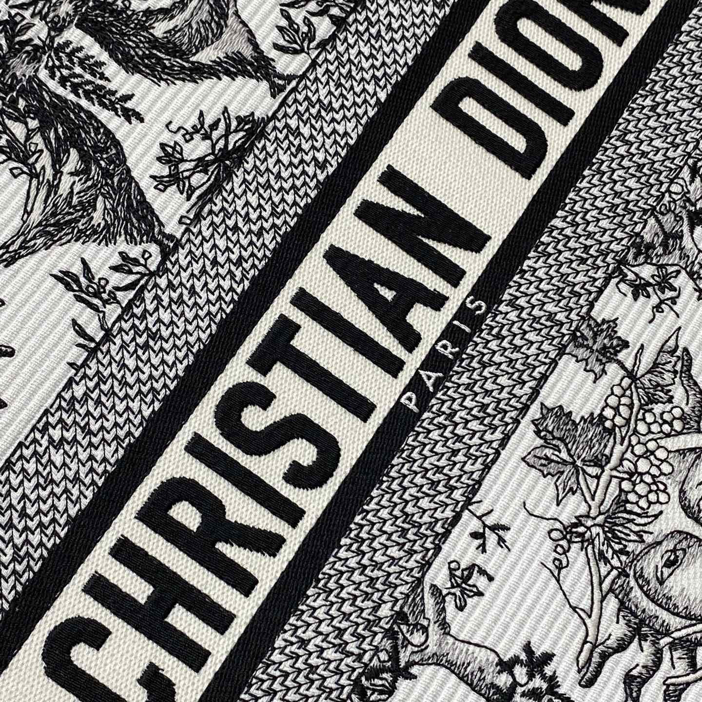 Dior Medium Dior Book Tote White Black/Navy Blue Soleil Embroidered Canvas