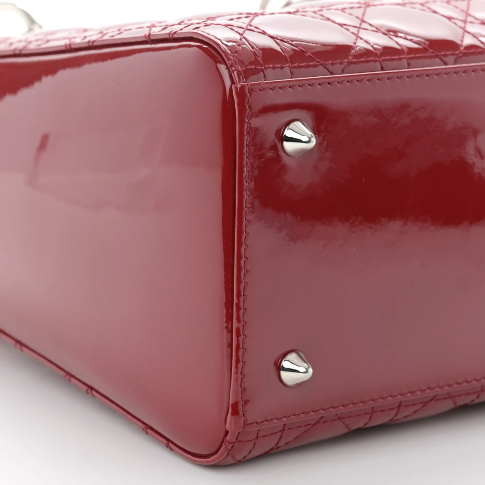 Dior Medium Lady Dior Dark Red Patent Cannage Calfskin Leather Silver Hardware