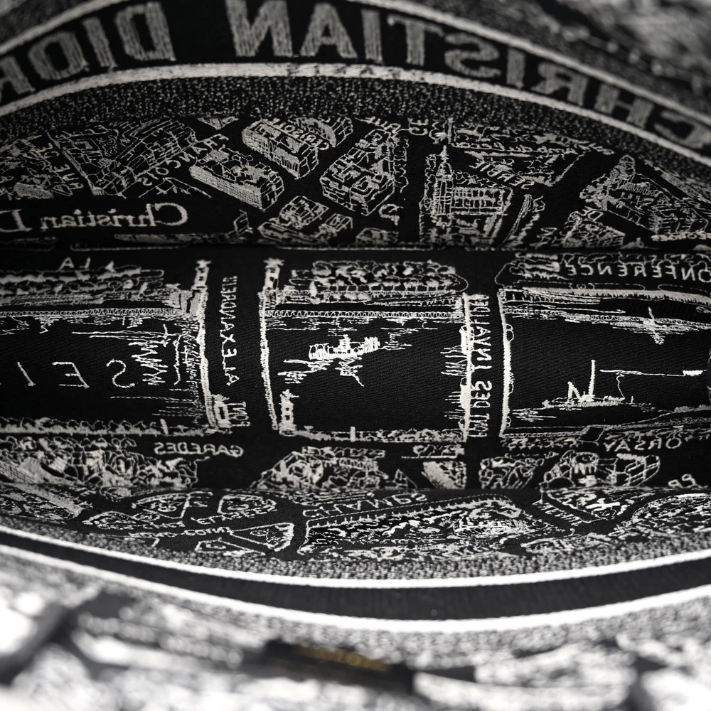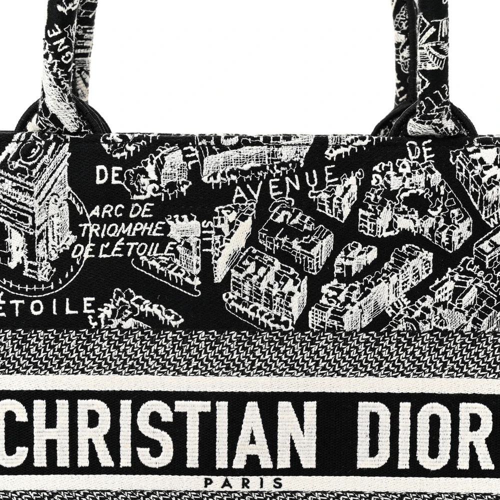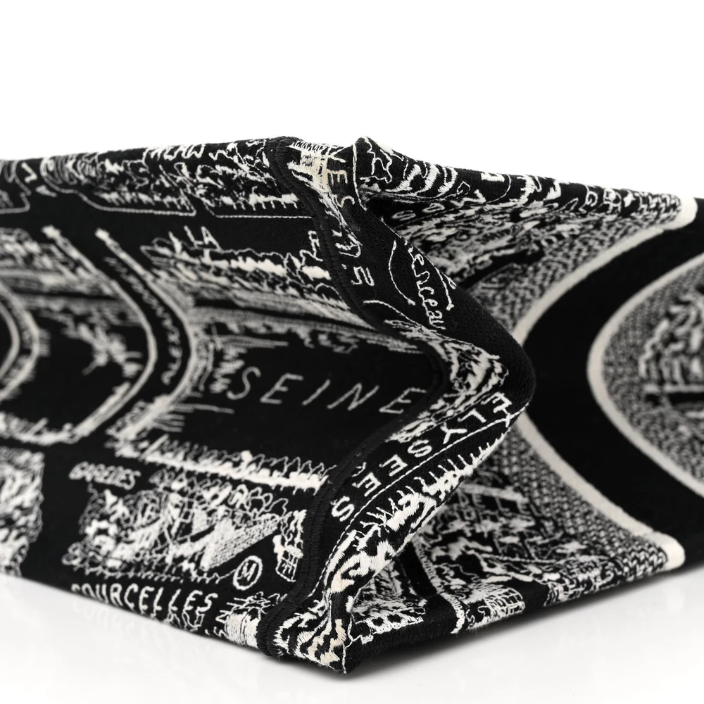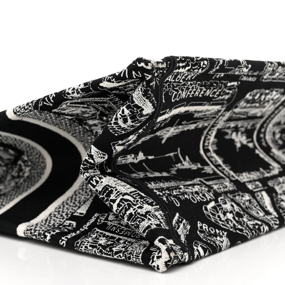 Dior Medium Plan De Paris Book Tote Black/White Embroidered Canvas