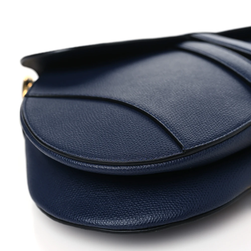 Dior Medium Saddle Bag Indigo Blue Grained Calfskin Leather Gold Hardware
