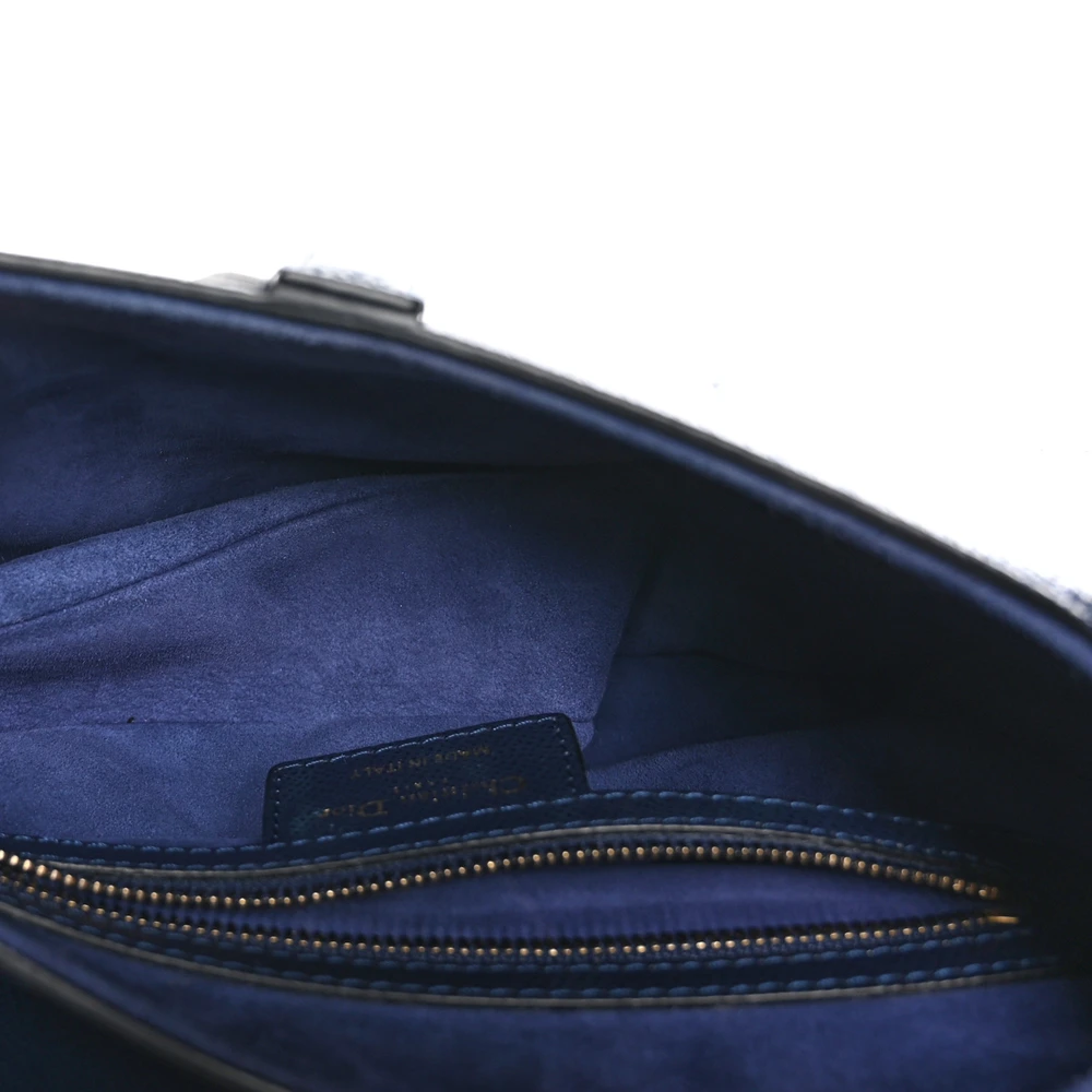 Dior Medium Saddle Bag Navy Blue Grained Calfskin Leather Gold Hardware