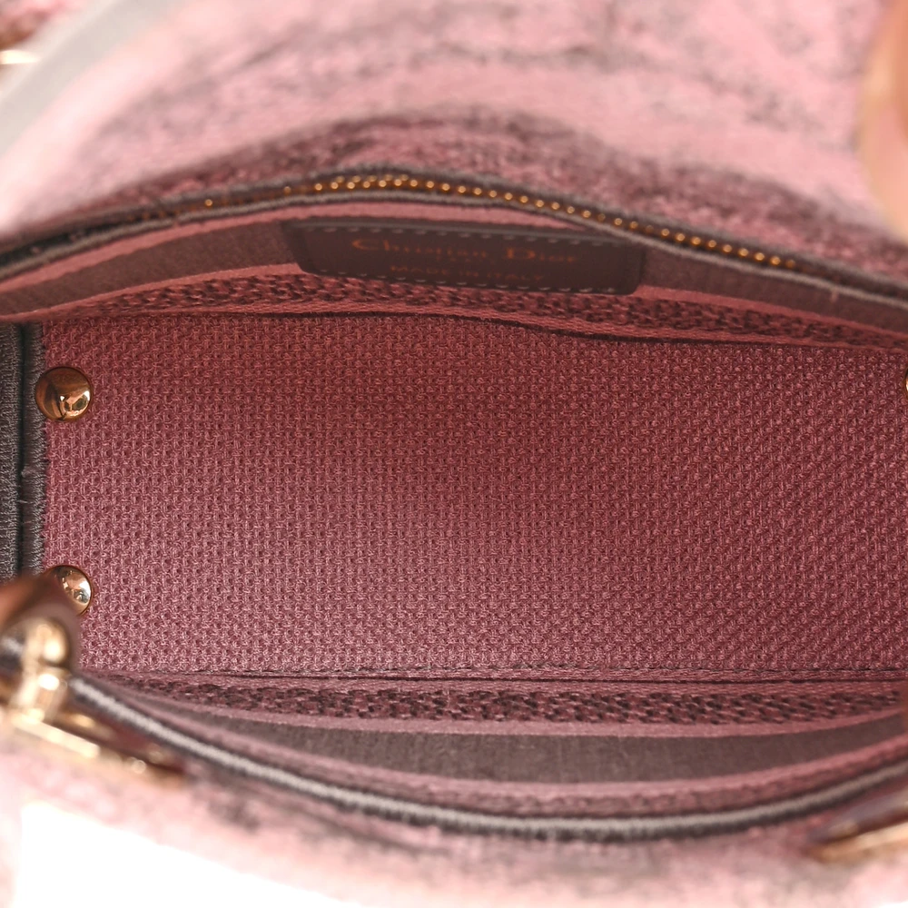 Dior Mini Toile De Jouy Lady D-Lite Grey/Pink Embroidered Canvas Gold Hardware