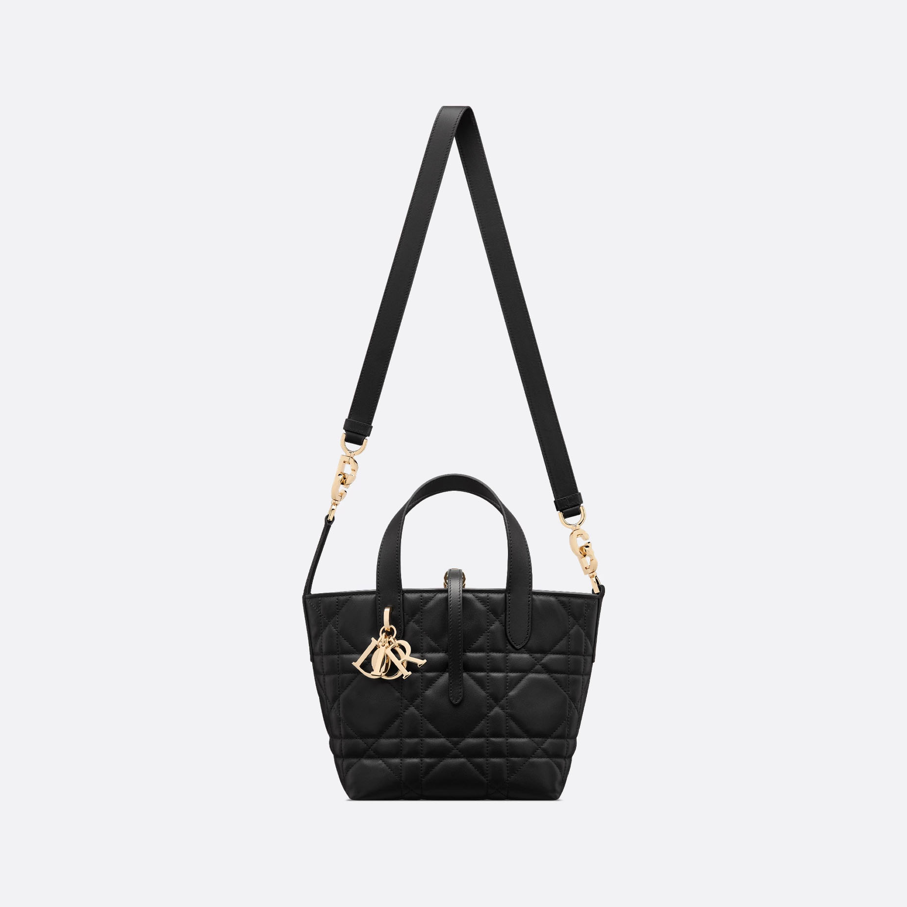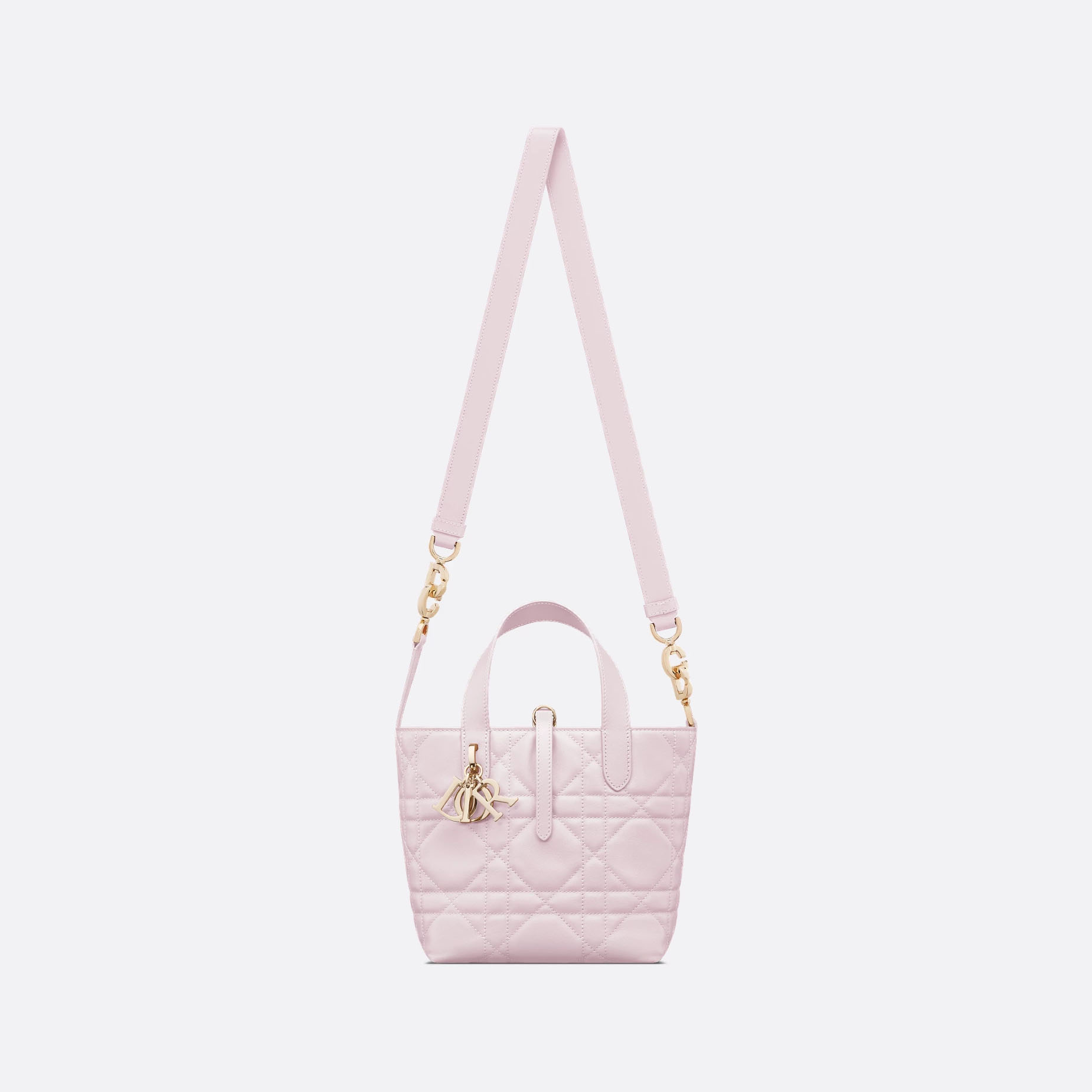New for Fall 2025, the modern and practical Dior Toujours vertical tote bag is presented in a nano variation. Crafted in Light Pink/Black/White/Beige calfskin with Macrocannage topstitching, it has a spacious interior compartment to accommodate all the essentials. Its thin leather strap closure keeps items secure, while the D of the pale gold-finish metal CD Lock clasp twists to adjust the sides and enhance the bag’s silhouette. The leather top handles are completed by a removable leather strap, allowing the bag to be carried by hand, worn over the shoulder or crossbody.