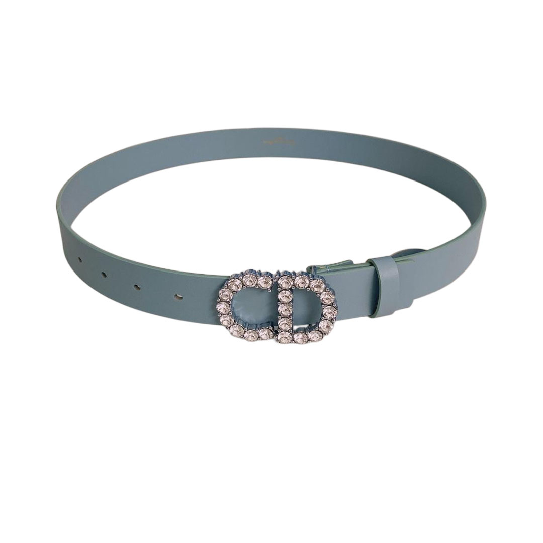 Dior Women’ s 30 Montaigne Buckle With Crystals Belt In Black/Mustard/White/Blue Calfskin With Gold/Silver Hardware 30mm