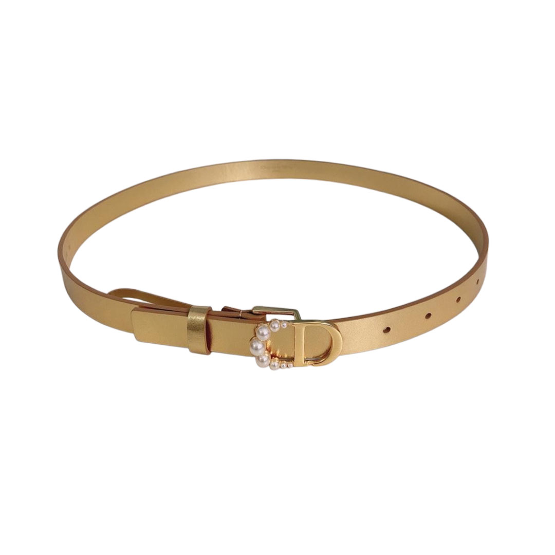 Dior Women’ s 30 Montaigne Buckle With Pearls Belt In Brown/Black/Red/White/Cyclamen/Pink/Musturd/Silver/Gold/Blue/Grey Calfskin With Gold/Silver Hardware 20mm