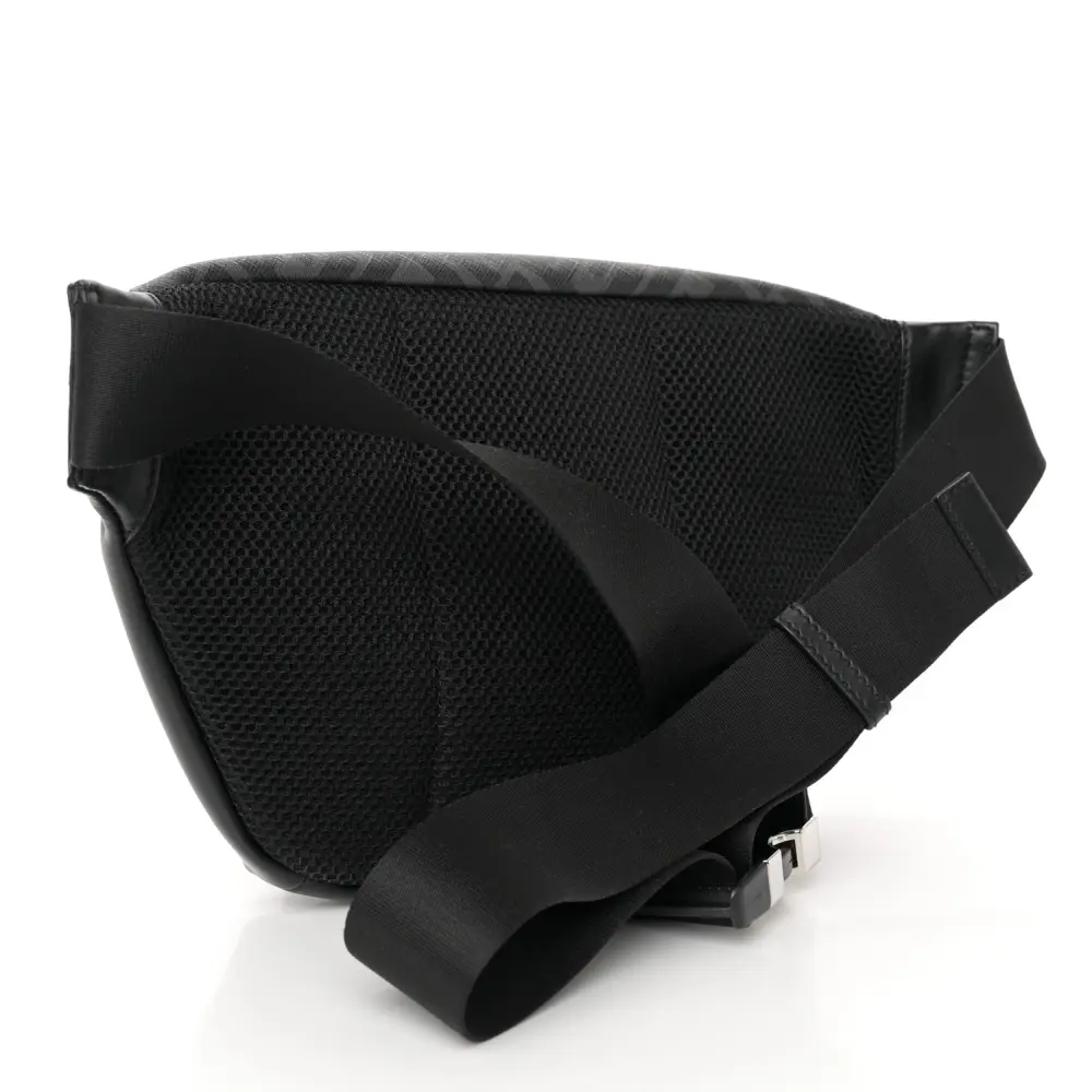 Fendi Century Logo FF 1974 Diagonal Belt Bag Black/Sunflower Glazed Fabric & Liberty Vitello Leather Silver Hardware