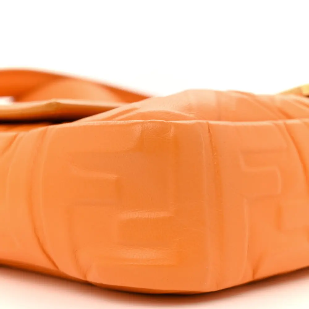 Fendi FF 1974 Embossed Baguette Clementine Nappa Leather Gold Hardware