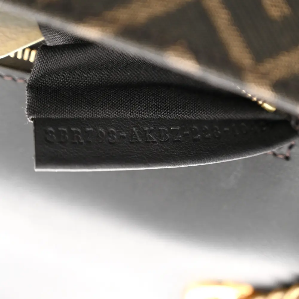 This Fendi Mini Dolce Macro FF 1974 Baguette in Tobacco/Black Shearling is cozy and stylish. Gold hardware adds a luxurious touch to its texture. Compact design is ideal for carrying essentials. Adjustable strap ensures versatile wear for any occasion. Perfect for winter or fall ensembles. A charming addition to your accessory collection.