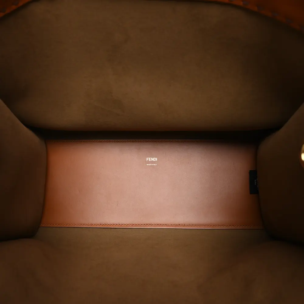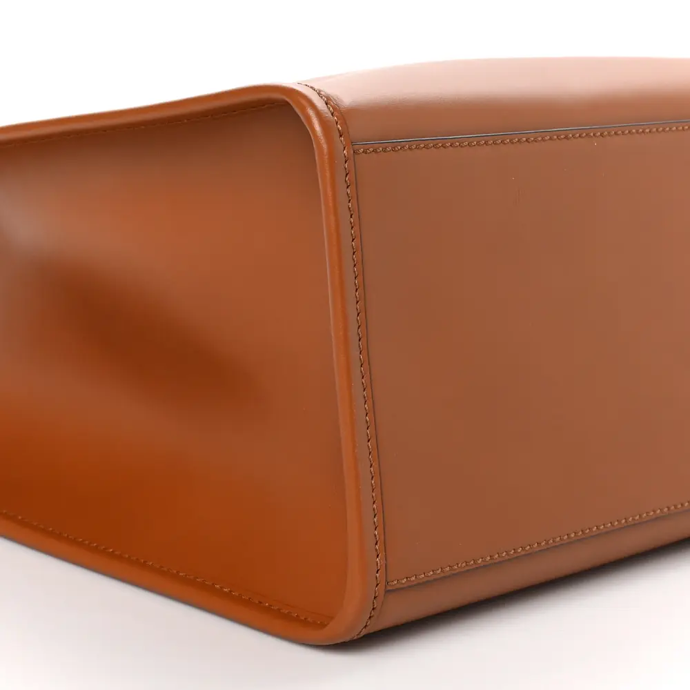 This Fendi Medium Fendi Sunshine Shopper Tote in Cuoio King Vitello Leather is stylish and practical. Plexiglass details and gold hardware elevate its structured design. Spacious enough for all your essentials, it’s perfect for work or travel. The top handle adds elegance, while the open-top design offers easy access. A timeless choice for modern professionals. A must-have for chic functionality.