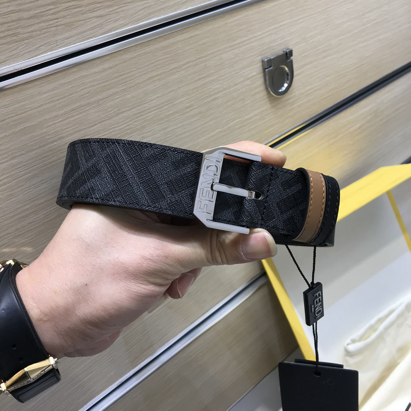 Fendi Men’s Square Buckle Belt In Black/Brown Calfskin And Monogram Canvas With Gold/Silver Hardware 35mm
