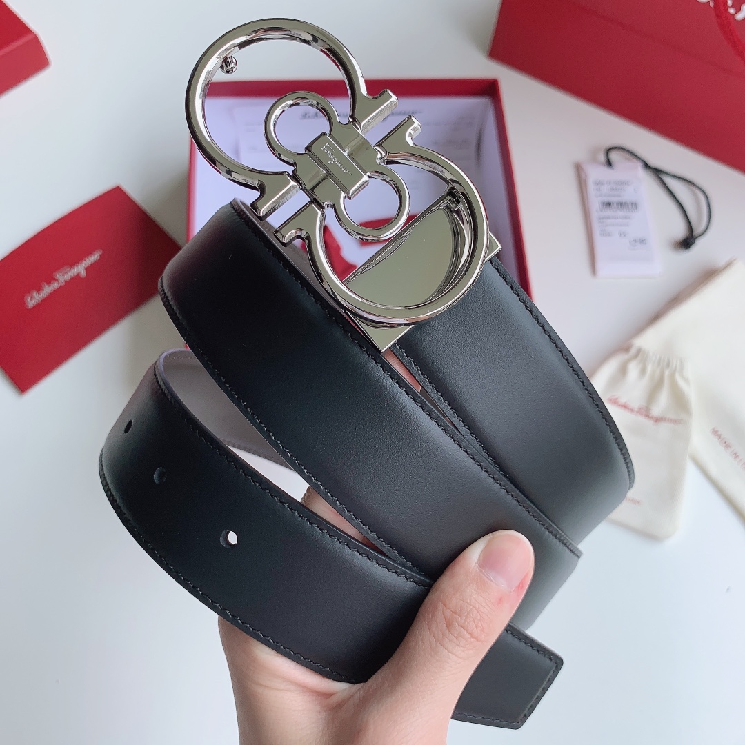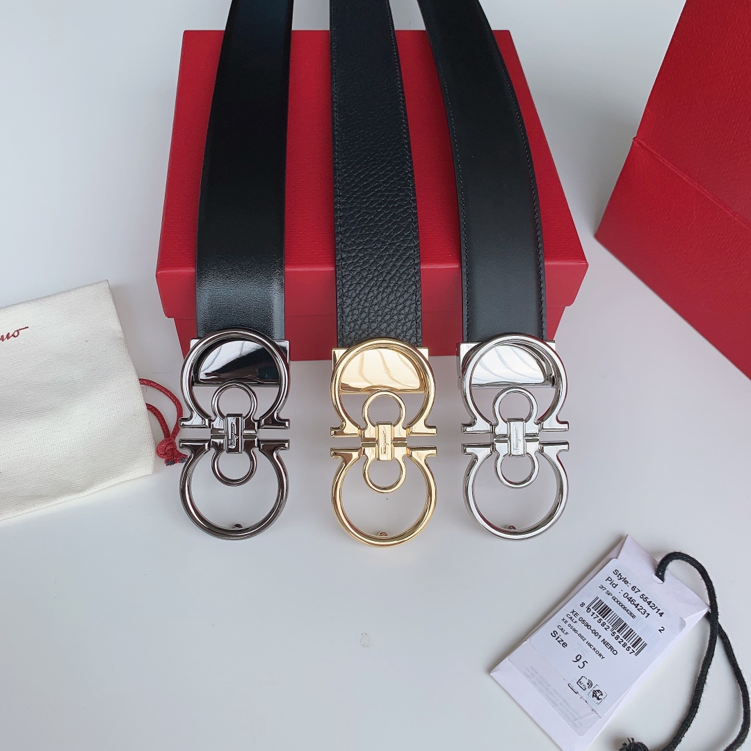 Ferragamo Men’s Double Gancini Buckle Reversible Belt In Black/Brown/Coffee Calfskin With Gold/Silver/Black Hardware 35mm
