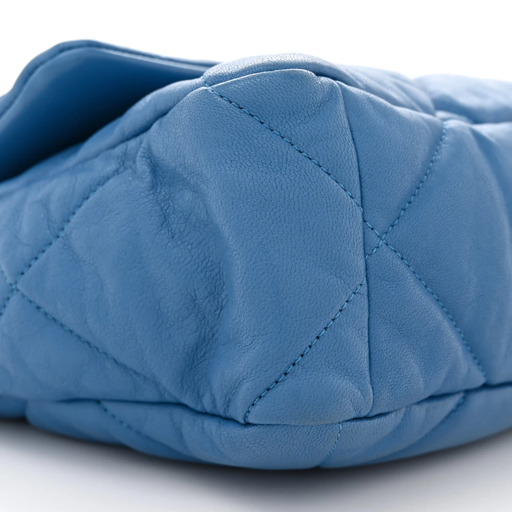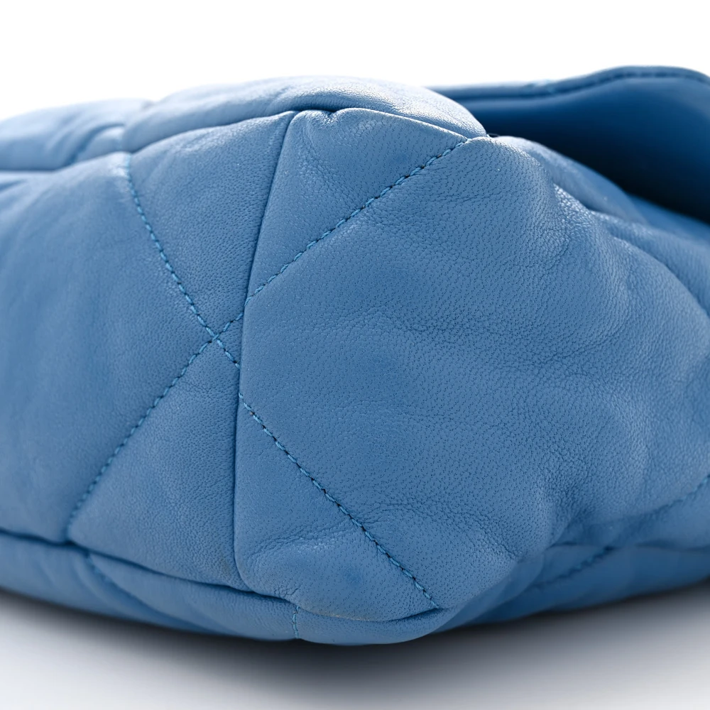 This Chanel Large Chanel 19 Flap in Blue Quilted Goatskin Leather with Mixed Metal Hardware is a statement of modern elegance. The soft goatskin leather and quilted design exude luxury, while mixed metal hardware adds a contemporary touch. Spacious yet structured, perfect for daily use or special occasions. The oversized CC clasp and chain strap enhance its iconic appeal. A bold and versatile addition to any wardrobe. A must-have for those who love standout designs.