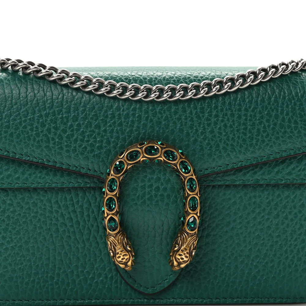 Gucci Mini Super Dionysus Shoulder Bag Emerald Dollar Calfskin Leather & Crystal Mixed Metal Hardware