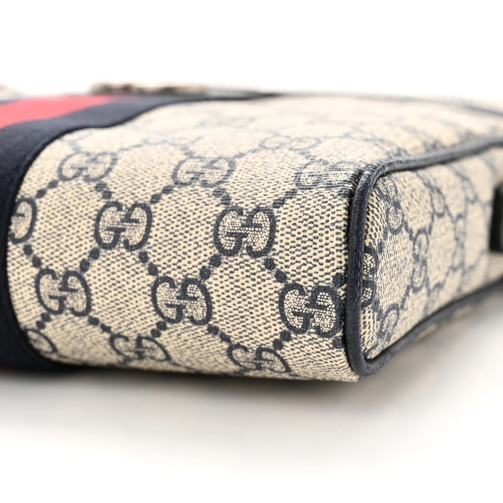 Gucci Small Web Ophidia Messenger Bag Beige/Blue GG Supreme Monogram Canvas & Textured Dollar Calfskin Leather Silver Hardware